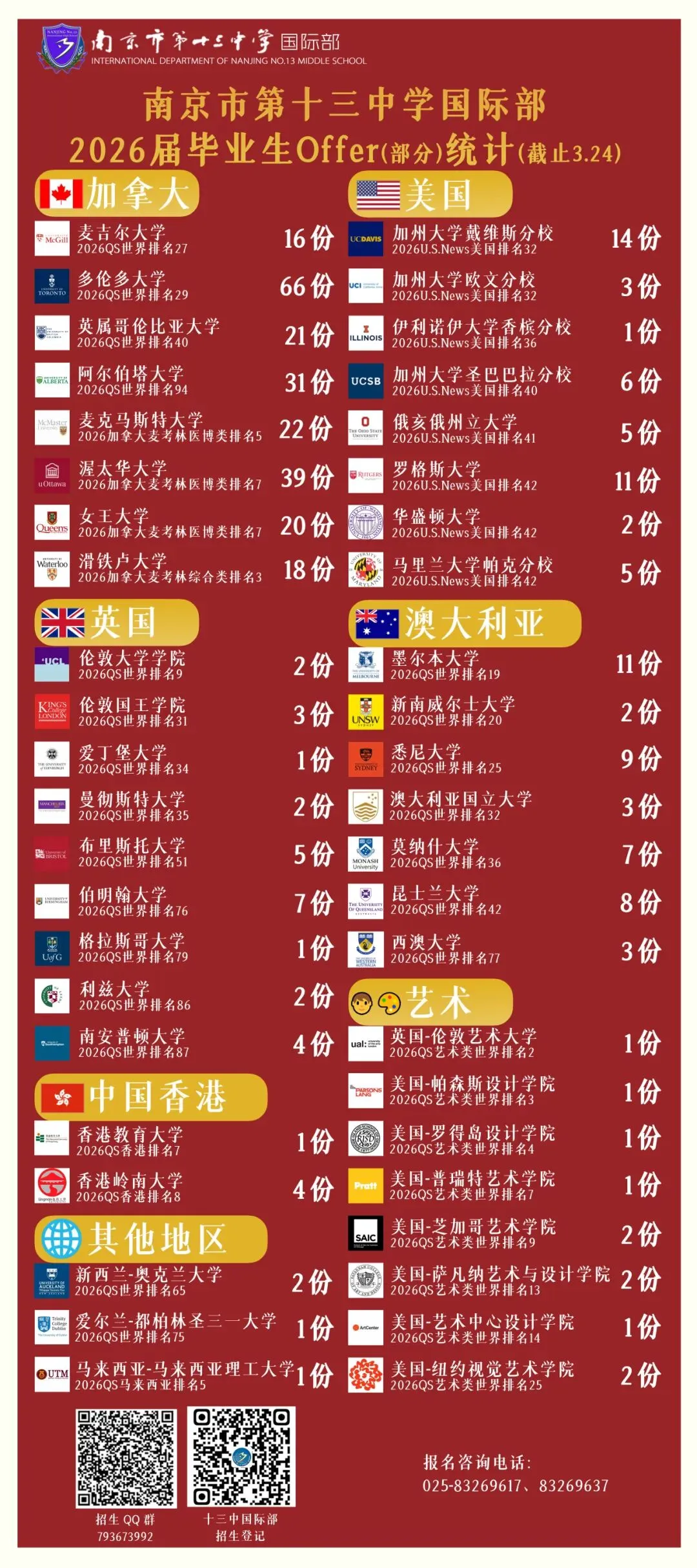 在日趋激烈的国际升学竞争中,我校中加班、中美班学子凭借开阔的全球视野与扎实的学术能力,实现了“多国混申、多点开花”,录取喜讯还在不断传来,让我们共同期待。