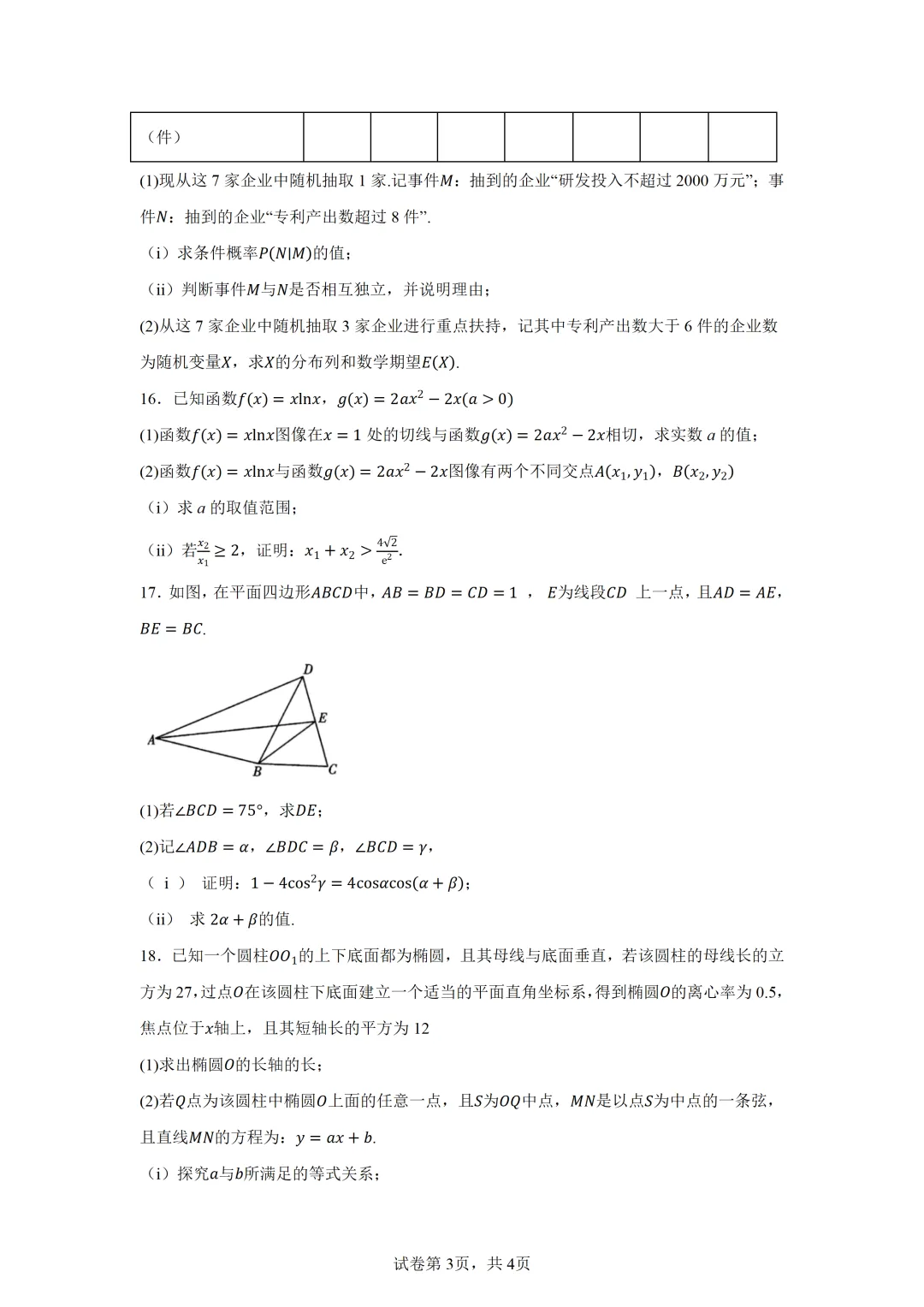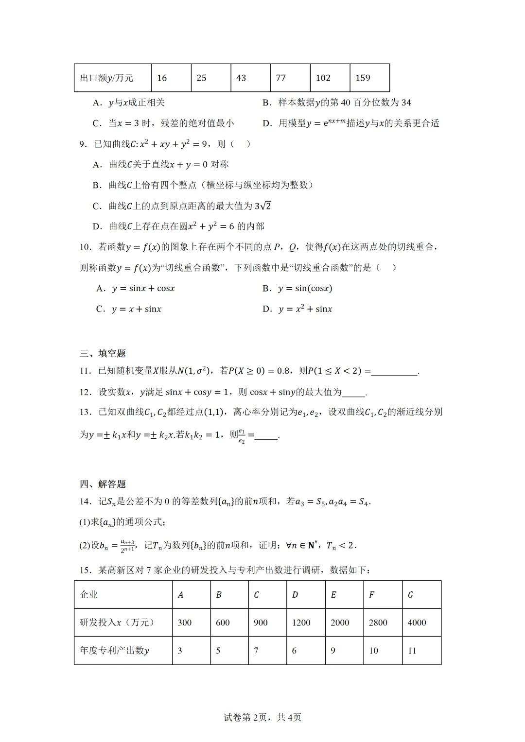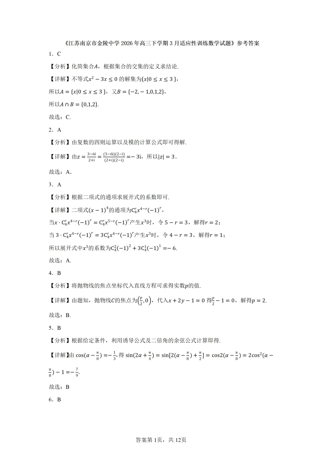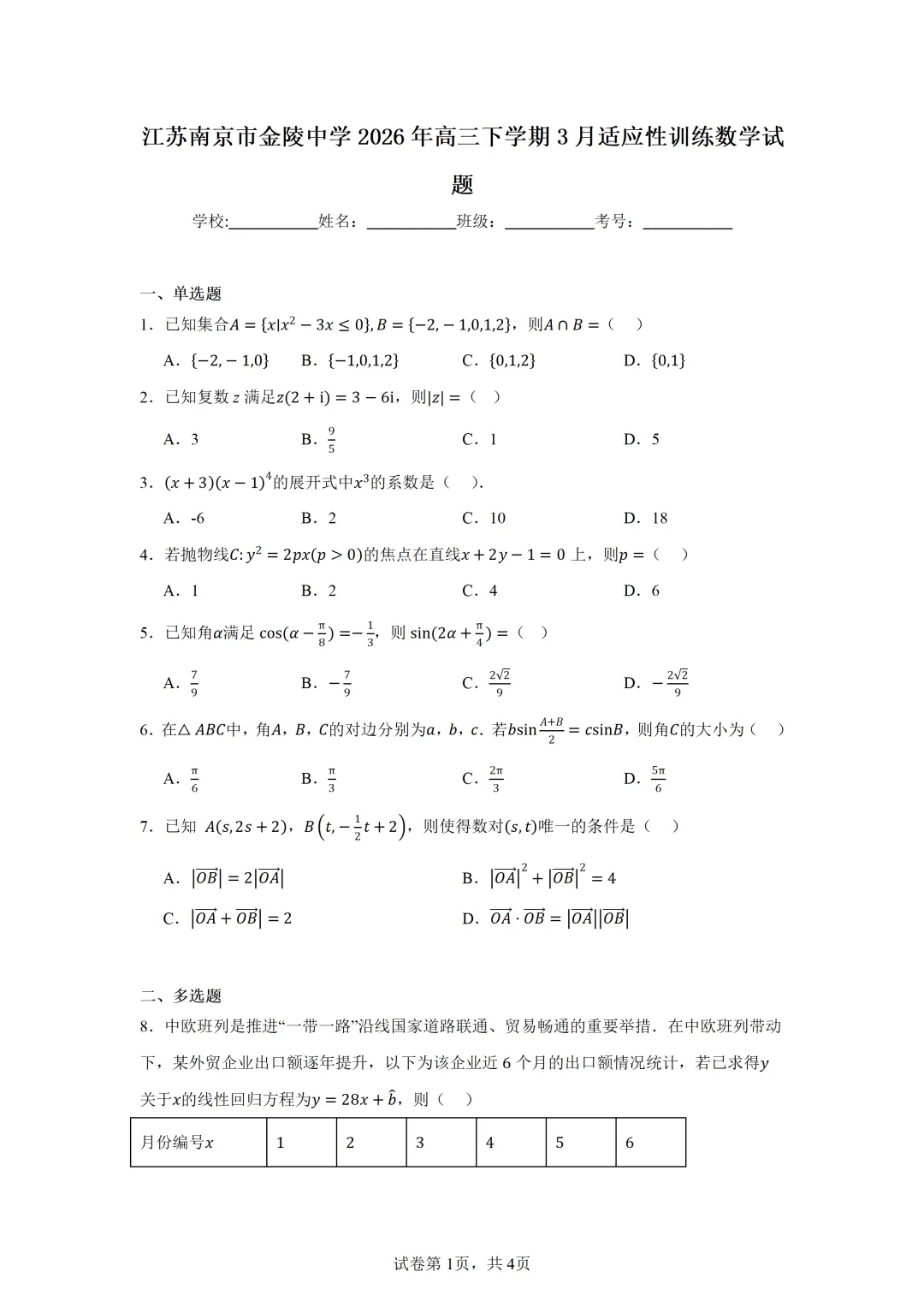 >江苏南京市金陵中学2026年高三下学期3月适应性训练数学试题