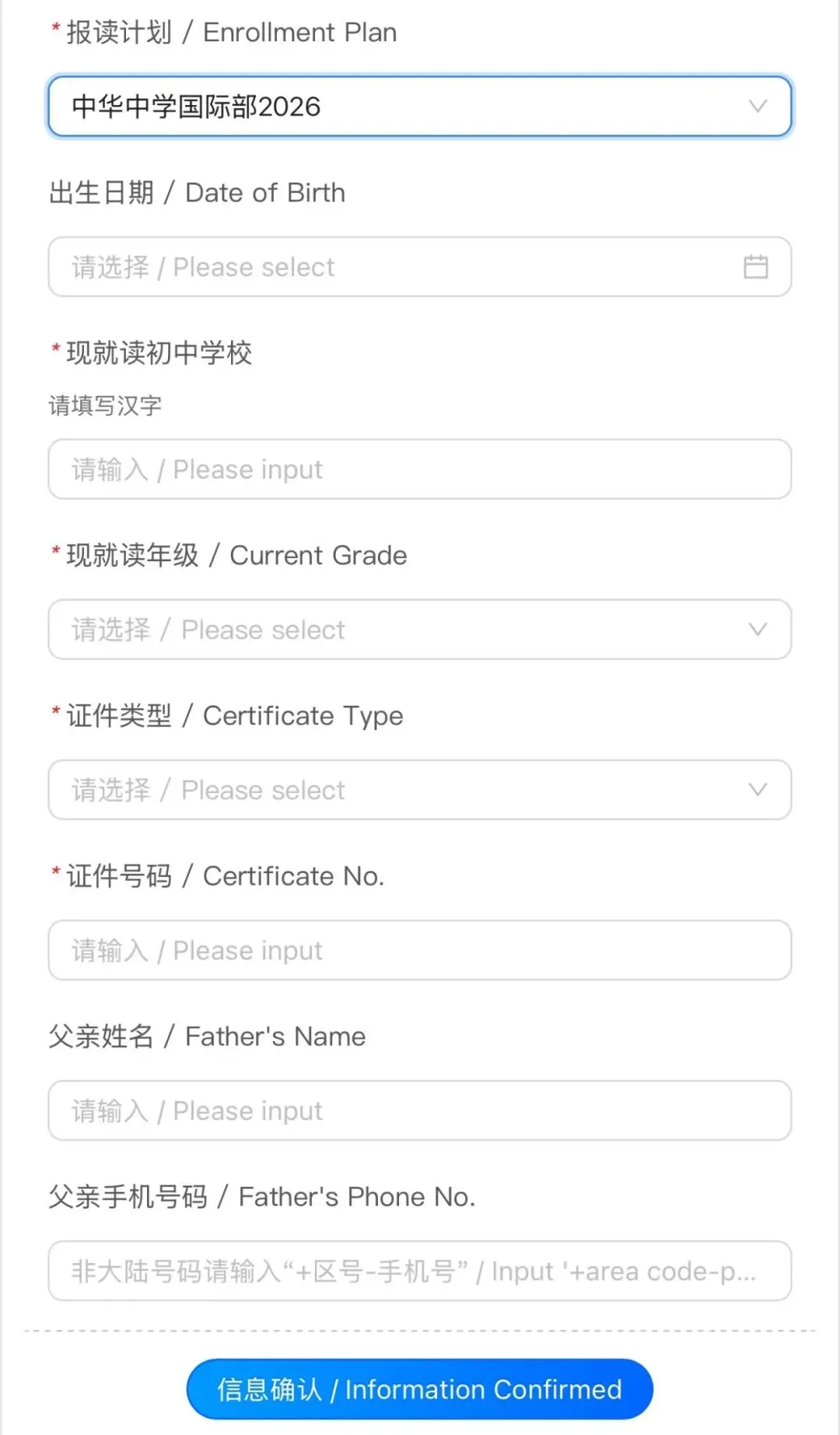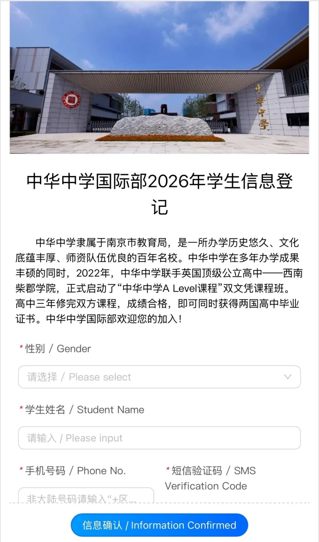 · 扫描二维码,进入“2026中华中学国际部信息登记表”页面,进行报名。