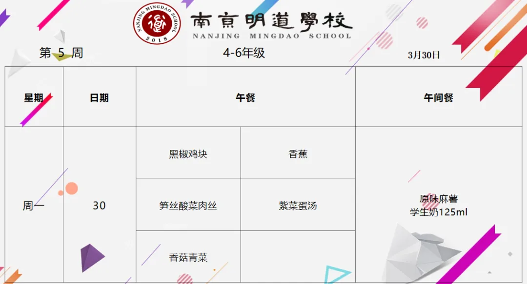 >南京明道学校第5周菜谱【4-6年级】20260330