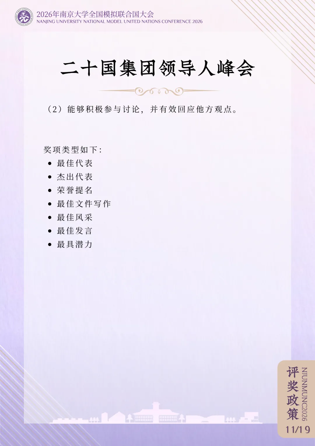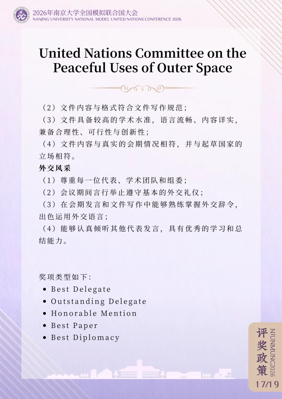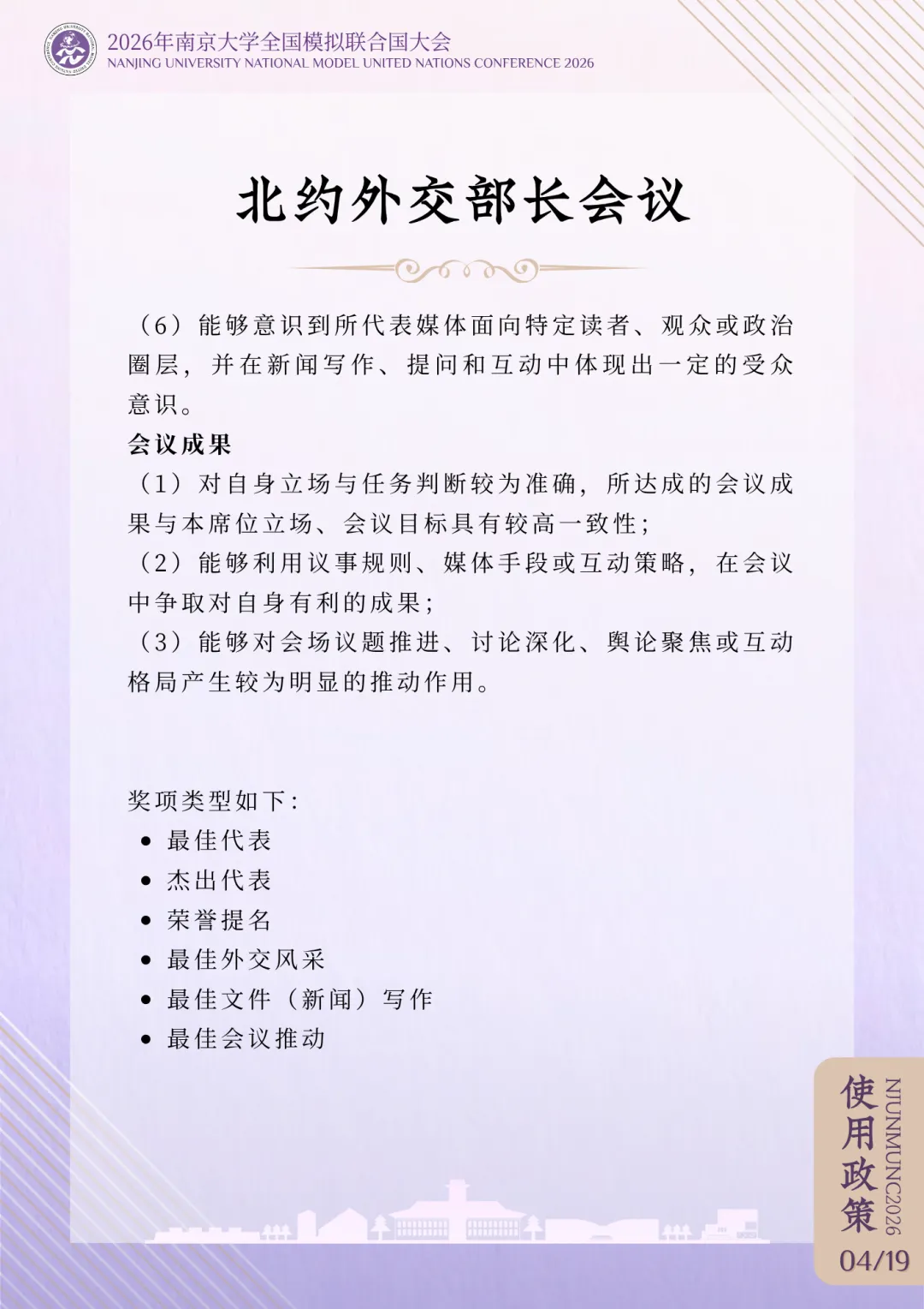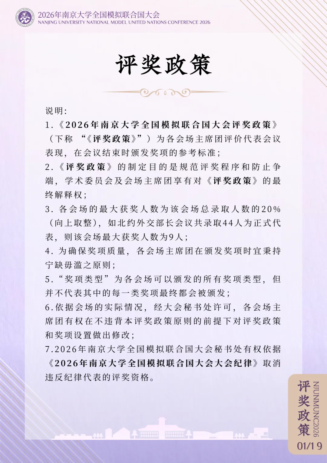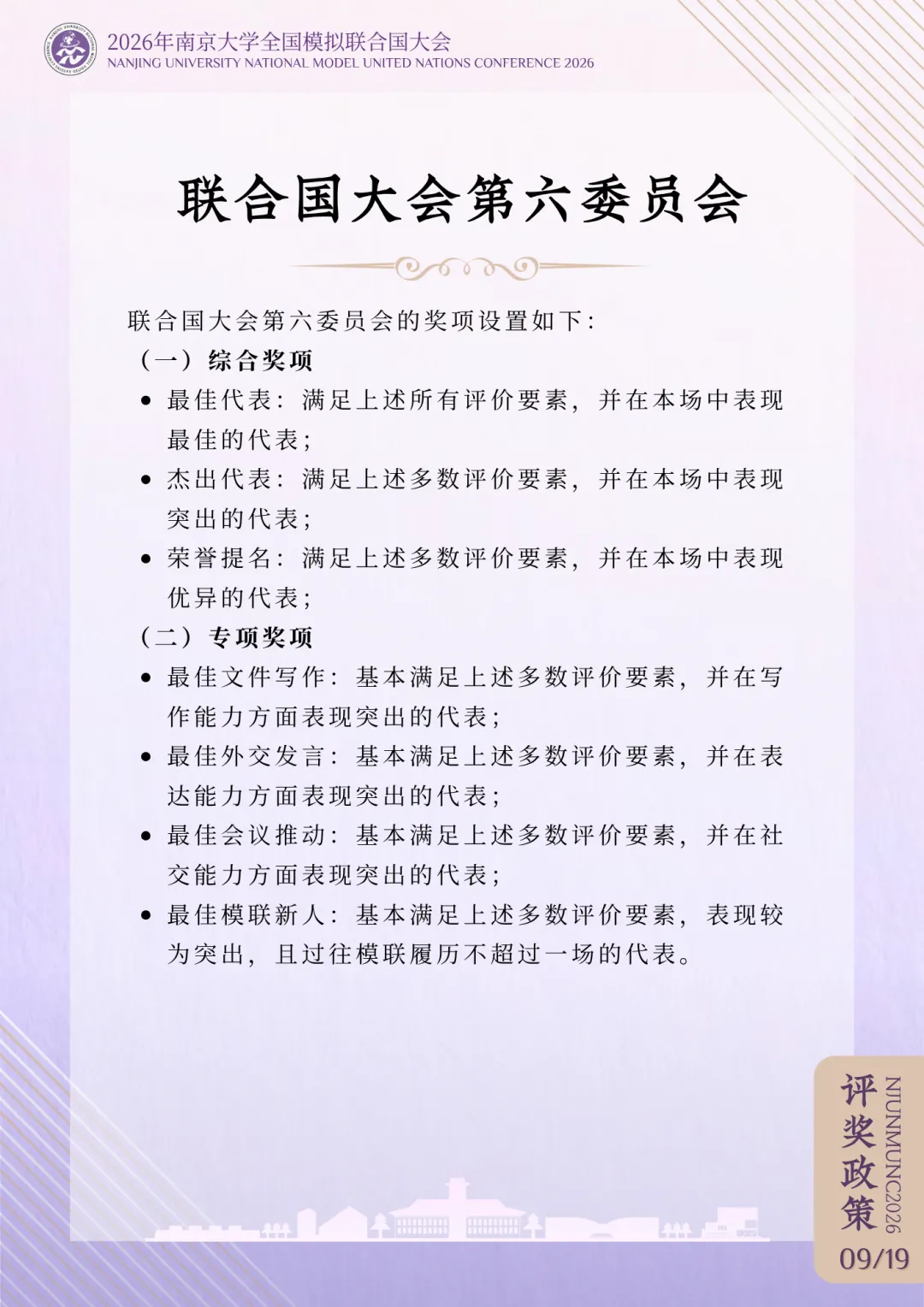 >评奖政策 | 2026年南京大学全国模拟联合国大会