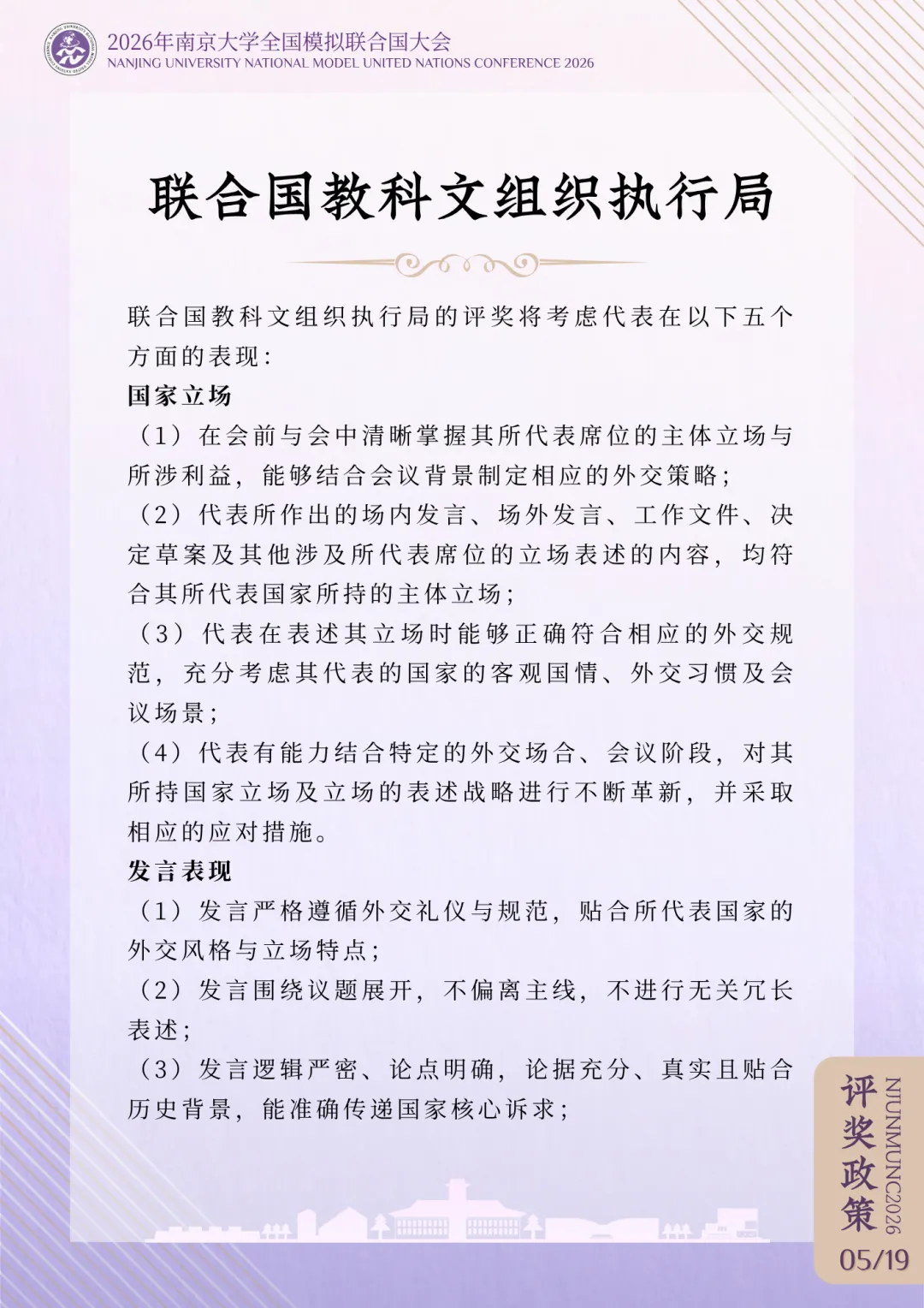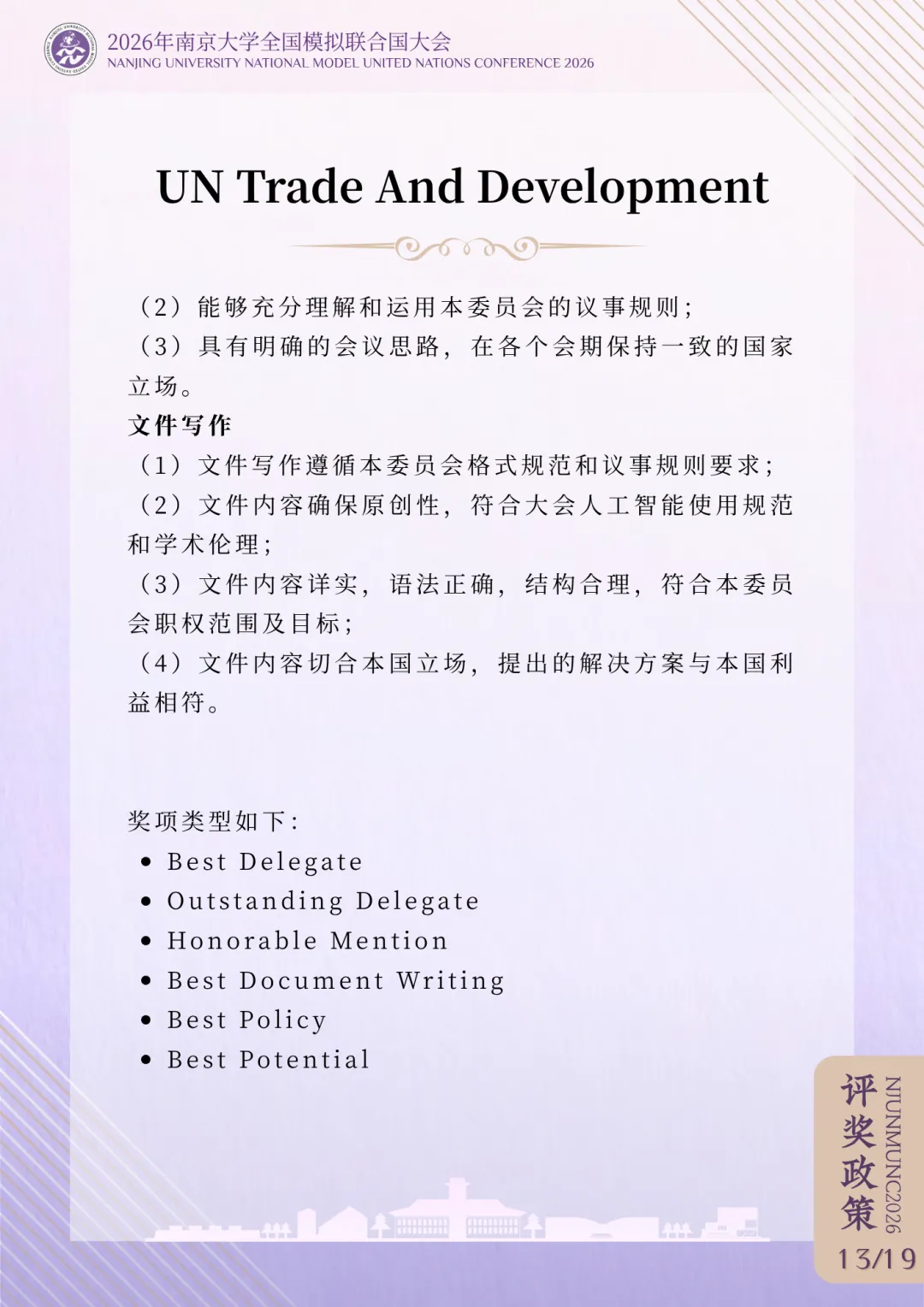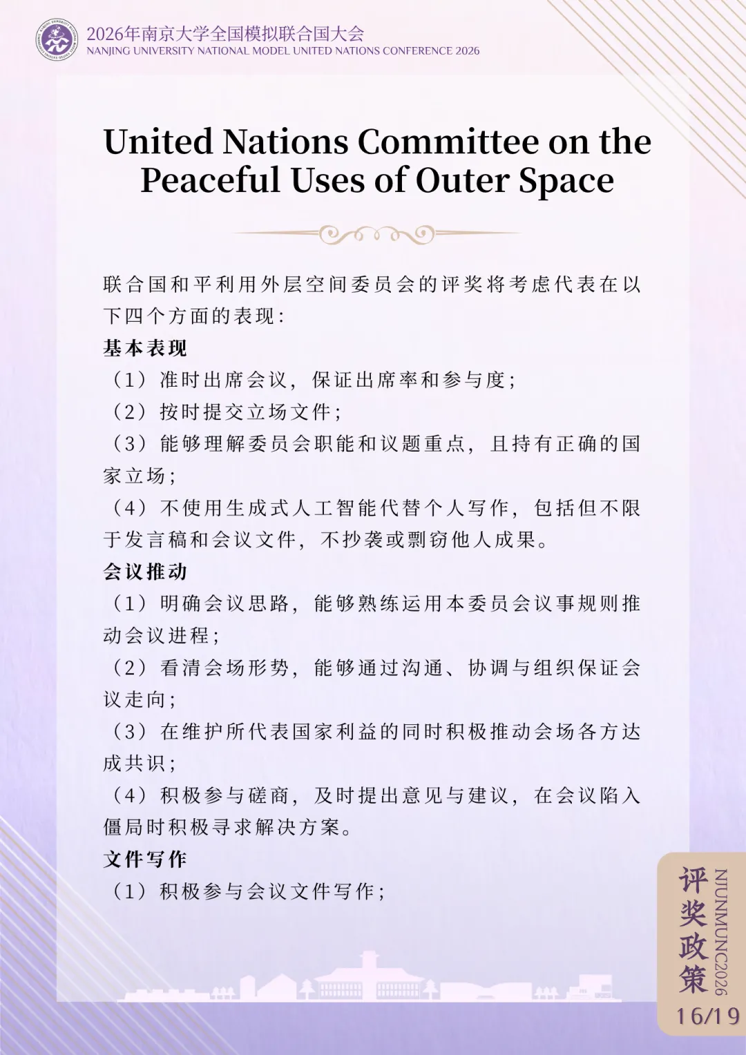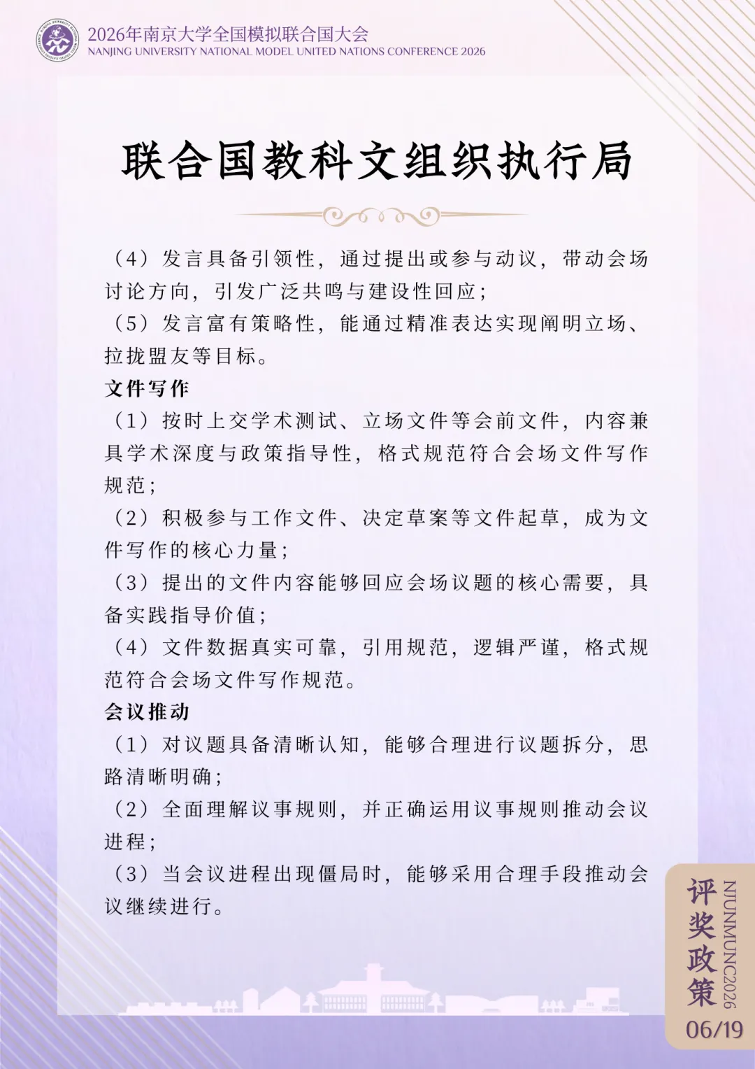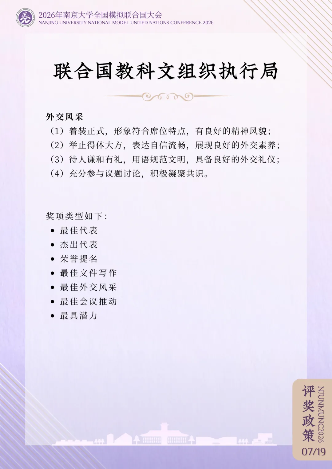 >评奖政策 | 2026年南京大学全国模拟联合国大会