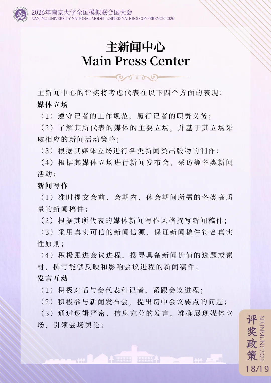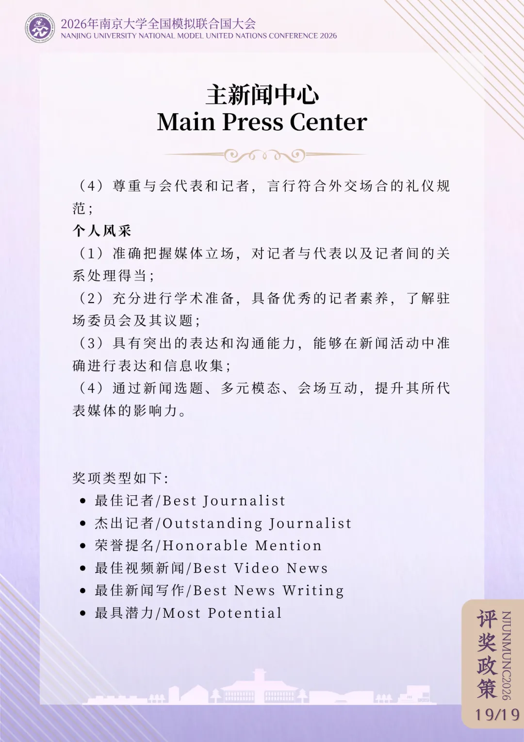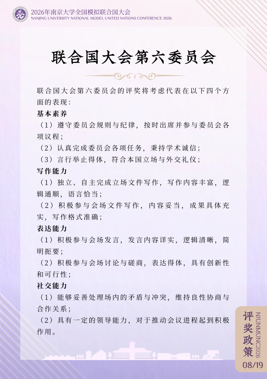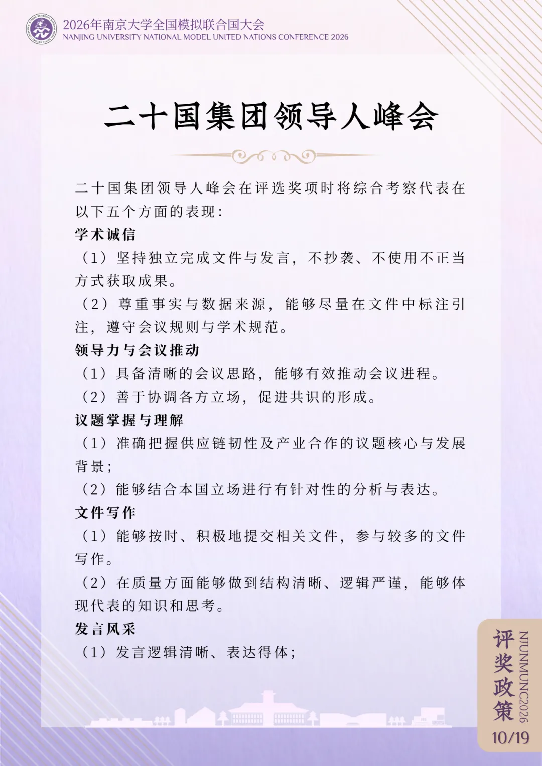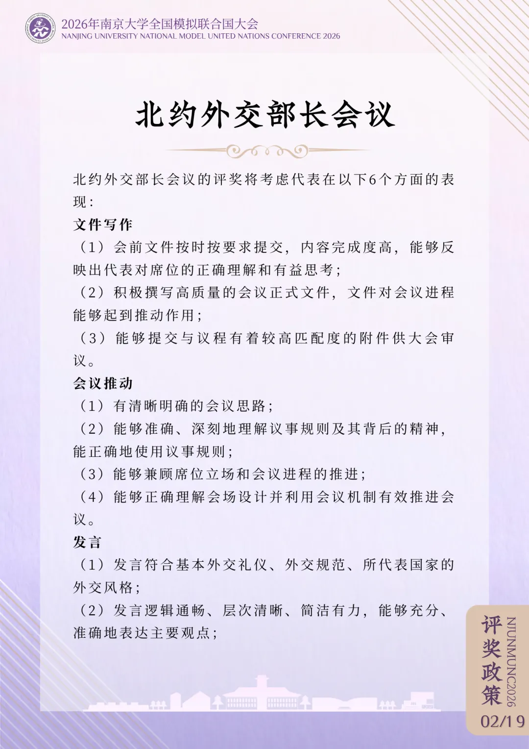 >评奖政策 | 2026年南京大学全国模拟联合国大会