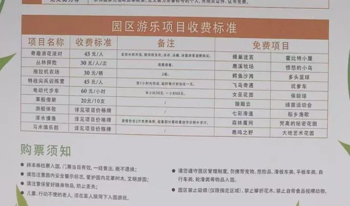 注:有额外收费项目要另行收费,想玩自己单独付钱就可以了。