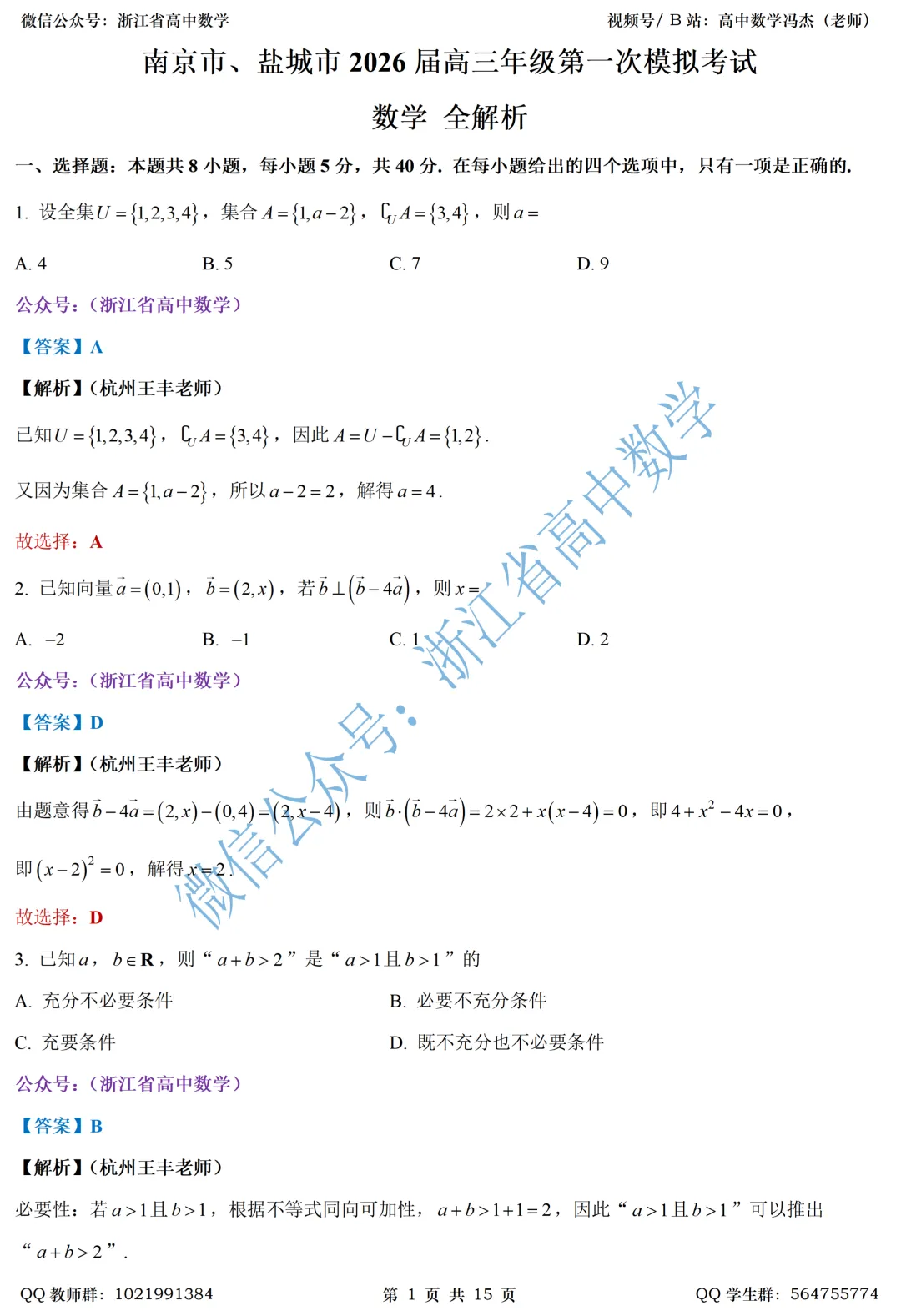 第一时间获取更多试卷解析与视频干货