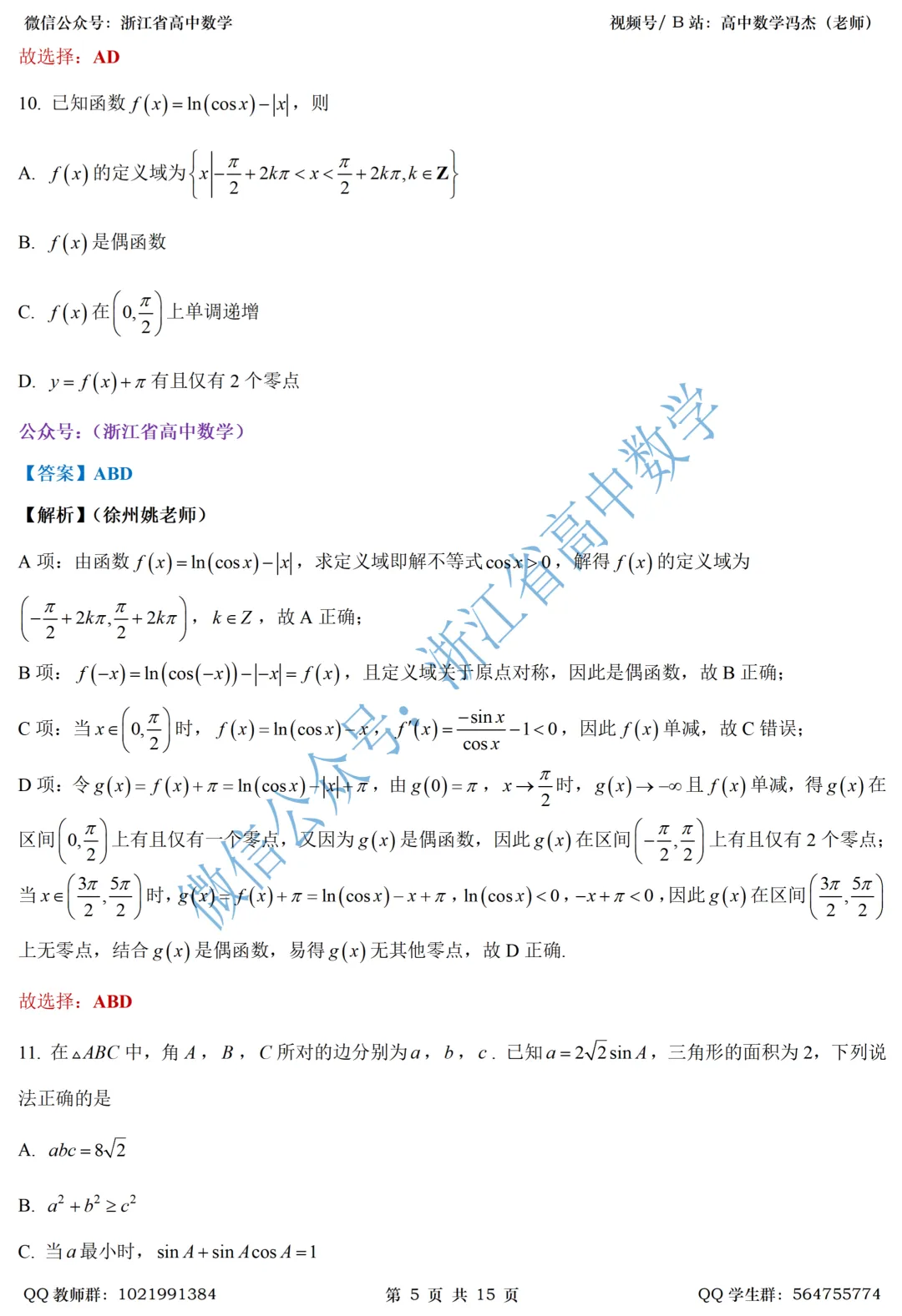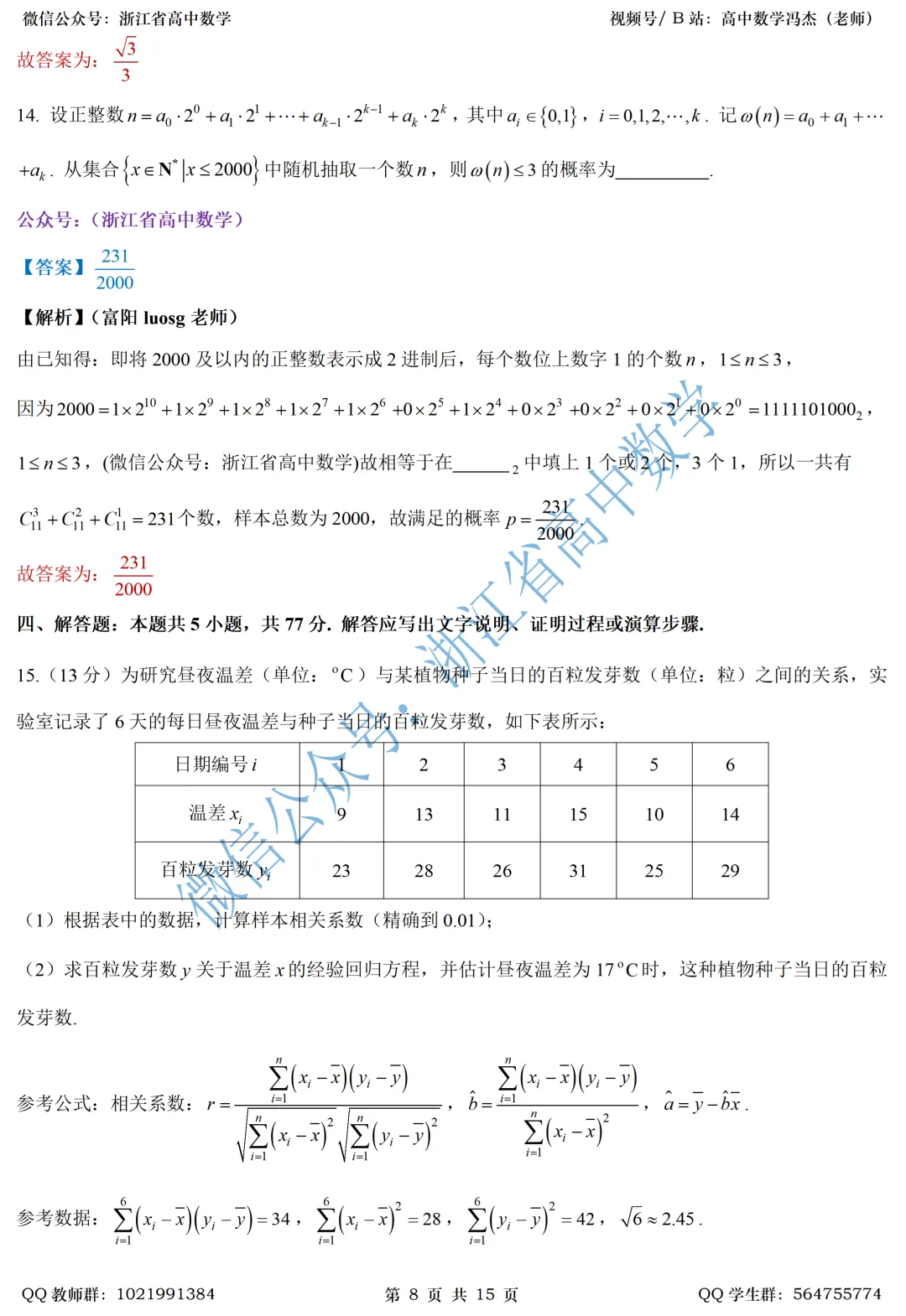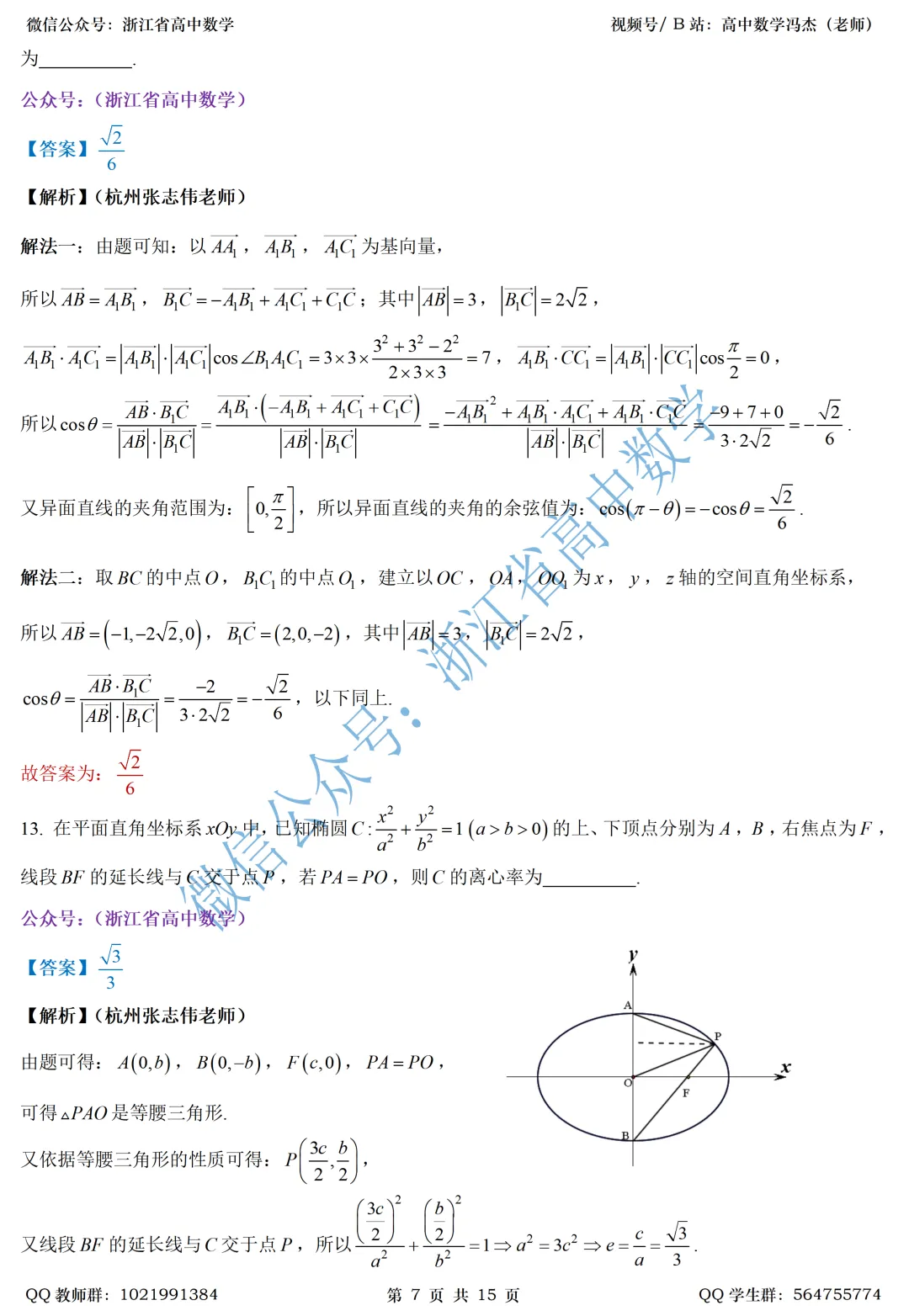 先附上浙江新学期逐题解析汇总: