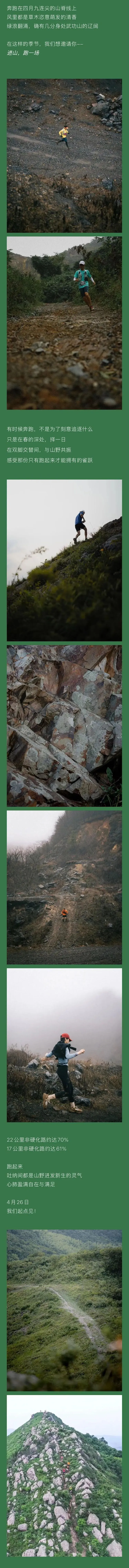 22公里非硬化路约达70%,17公里非硬化路约达61%;跑起来,吐纳间都是山野迸发新生的灵气,心肺盈满自在与满足。4月26日,我们起点见!