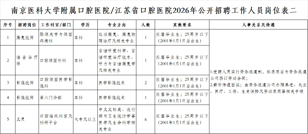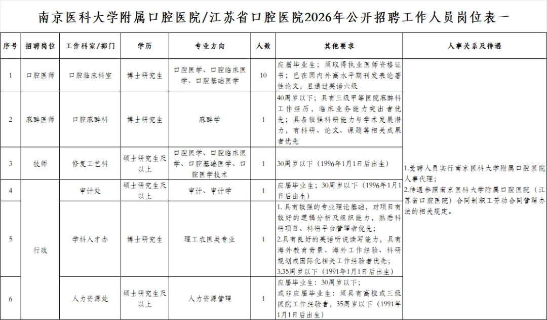 1.拟聘用人员名单在南京医科大学附属口腔医院公告栏公示7个工作日,相关材料报送上级人事部门审核和备案。