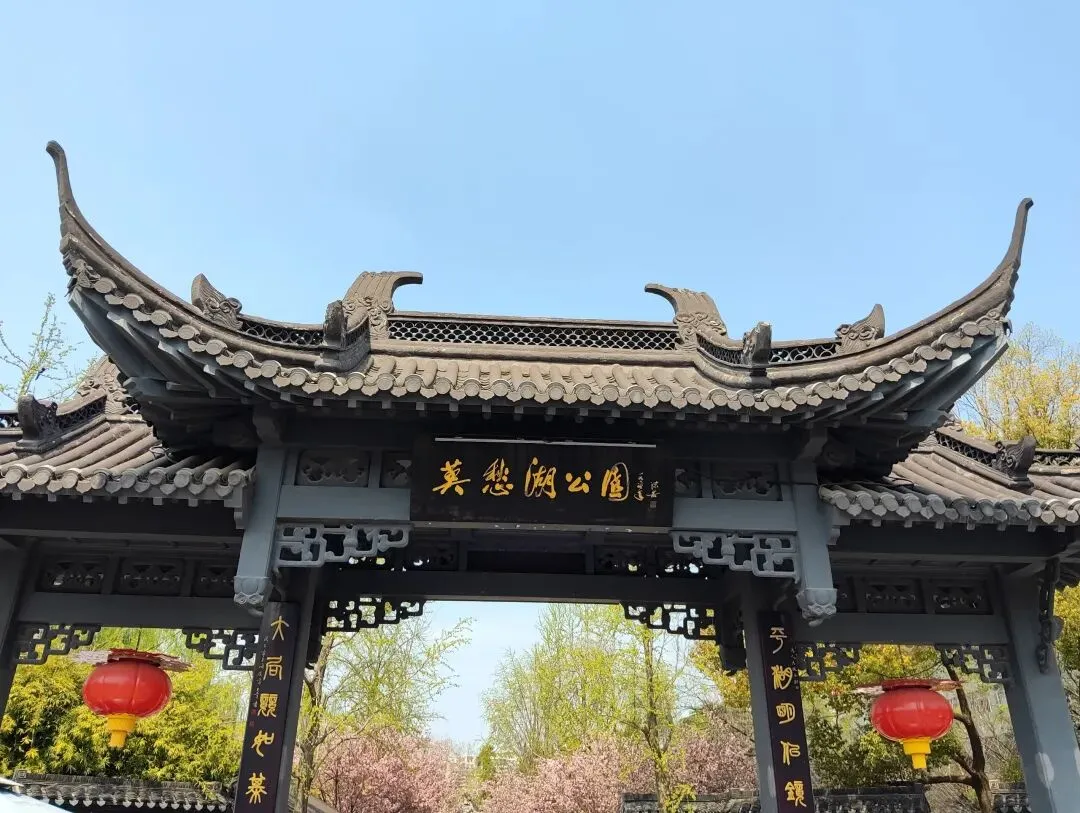 早樱也开的正好,绿柳丝在风里摇曳,我们围着莫愁湖转了一圈。