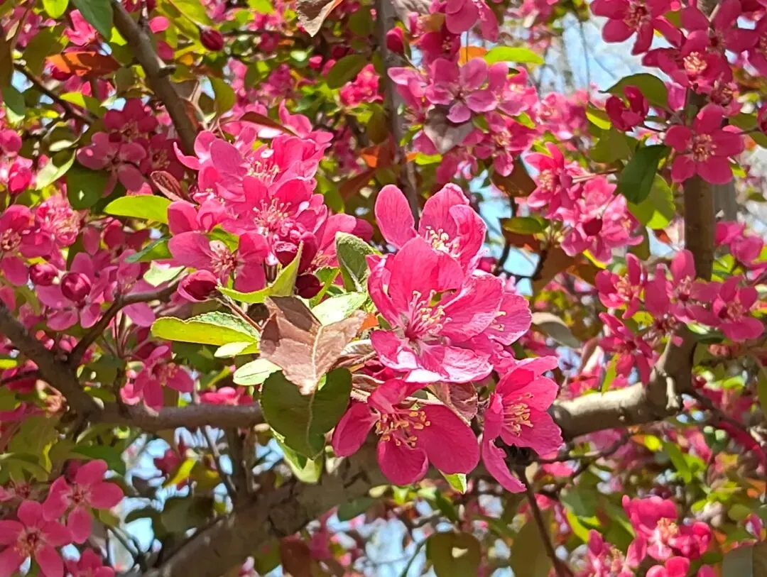 一进园就看到海棠缀满枝头,粉色娇嫩的花瓣簇拥在一起,微风拂过,落英缤纷,宛如一幅温婉的江南图。