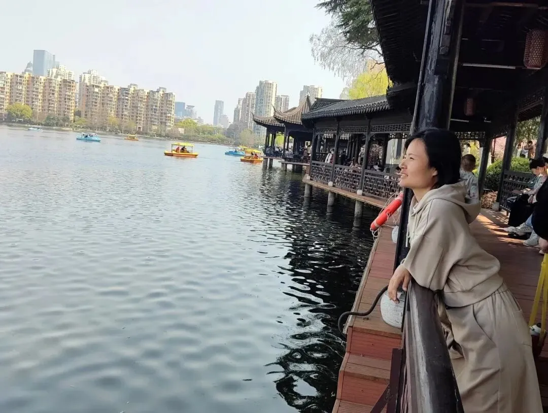 湖边的步道上,游人比肩接踵,老人慢悠悠地散步,年轻人忙着定格春日美景,孩童在花下嬉笑打闹。没有刻意寻静谧的角落,就跟着人流慢慢走,看海棠映着湖水,听身边细碎的欢声笑语,才知道南京的春,从来不是孤芳自赏,而是藏在这份欢喜里。