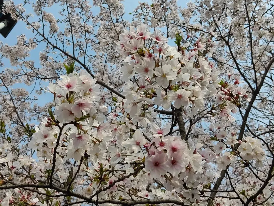 听说这里的樱花长廊沿江岸从五马渡延伸至到燕子矶,但我们时间有限,走过一段后就在一处停下,粉白的樱花如云,与滔滔江水相映成趣,江风夹着花香,吹散了半日的疲惫。这里的人同样不少,漫步在樱花树下,抬头是漫天繁花,低头是落英满地,远眺是壮阔江景,还有不少在此露营的人,待到夕阳西下,余晖洒在江面,在樱花树下感受这份独属于南京的春日浪漫。