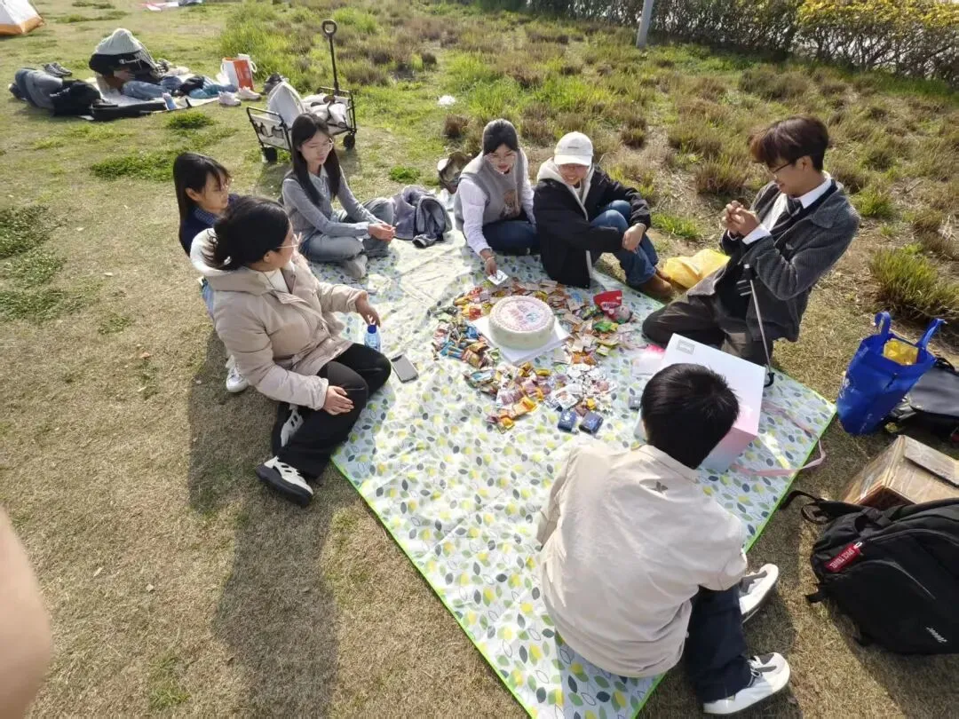 净滩活动后,八周年团建温馨开启。成员们围坐江景旁开展春日野餐,分享美食、畅谈理想,氛围惬意治愈。现场推出八周年定制蛋糕,大家共同切分蛋糕,祝福“麻袋”八周年相伴,祝愿珍珠之家与伙伴们未来顺遂。