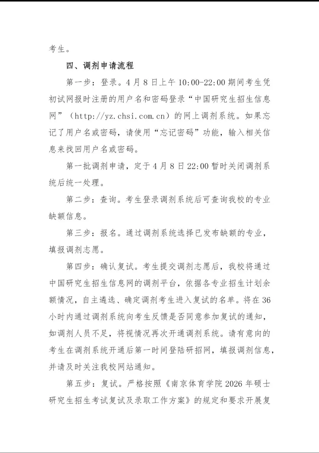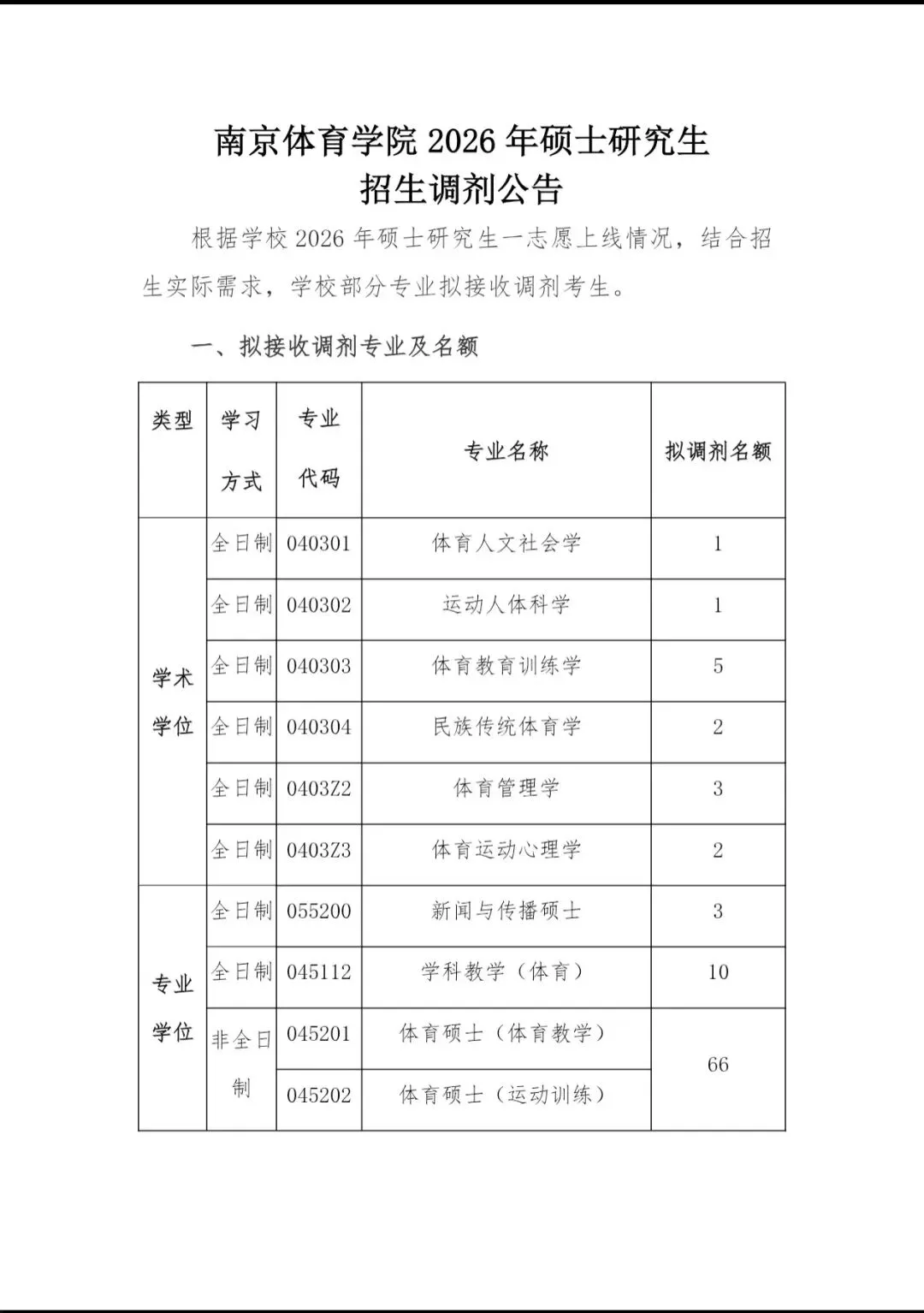 南京体育学院2026年硕士研究生招生调剂公告