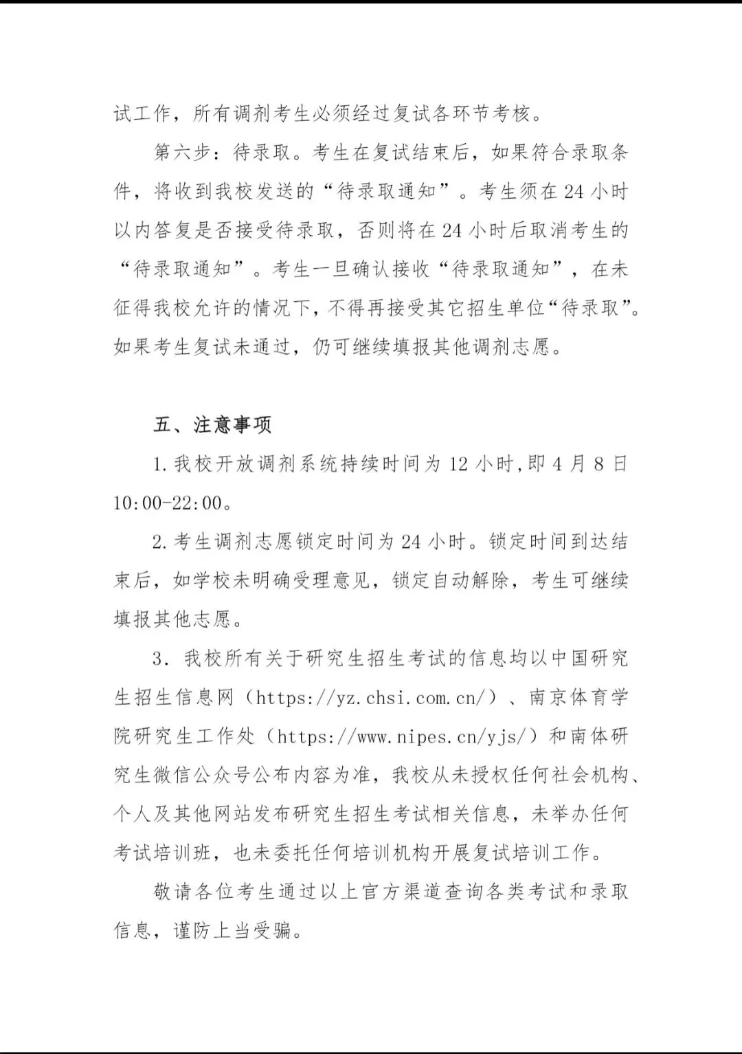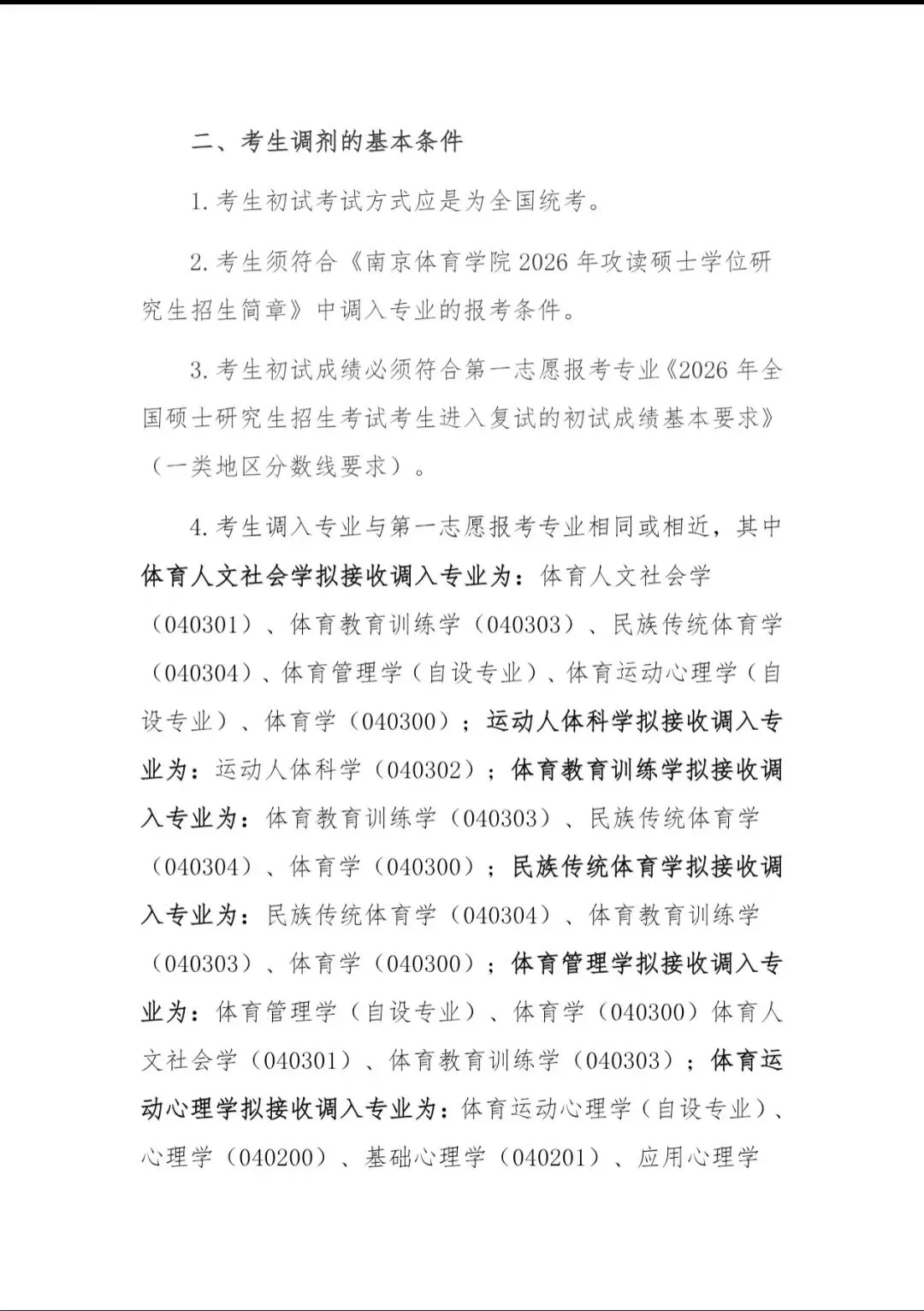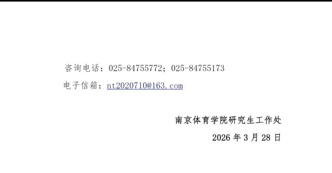 >南京体育学院2026年硕士研究生招生调剂公告