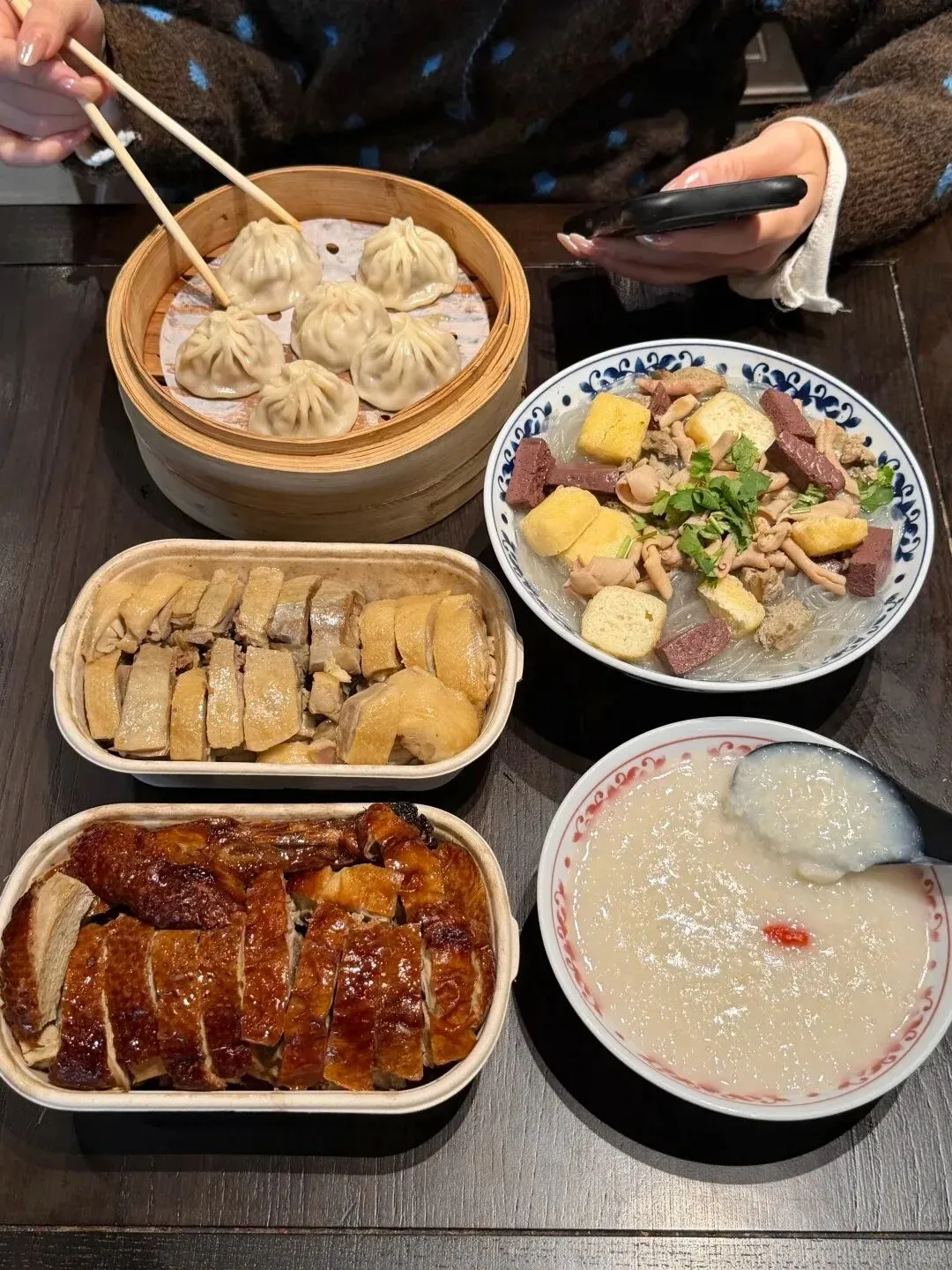 再配上一碗经典的美龄粥或是鸭血粉丝汤,切上一份肥美的烤鸭,这顿大餐让人直呼过瘾。