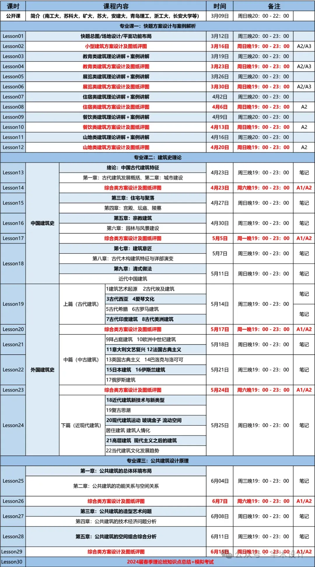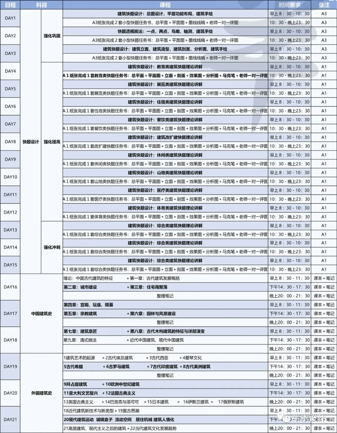 备注:春季快题和建筑史理论和建筑构造一体化教程,适合基础一般、提前学习、以及跨考的同学,理论同步上课,快题1对1看图)