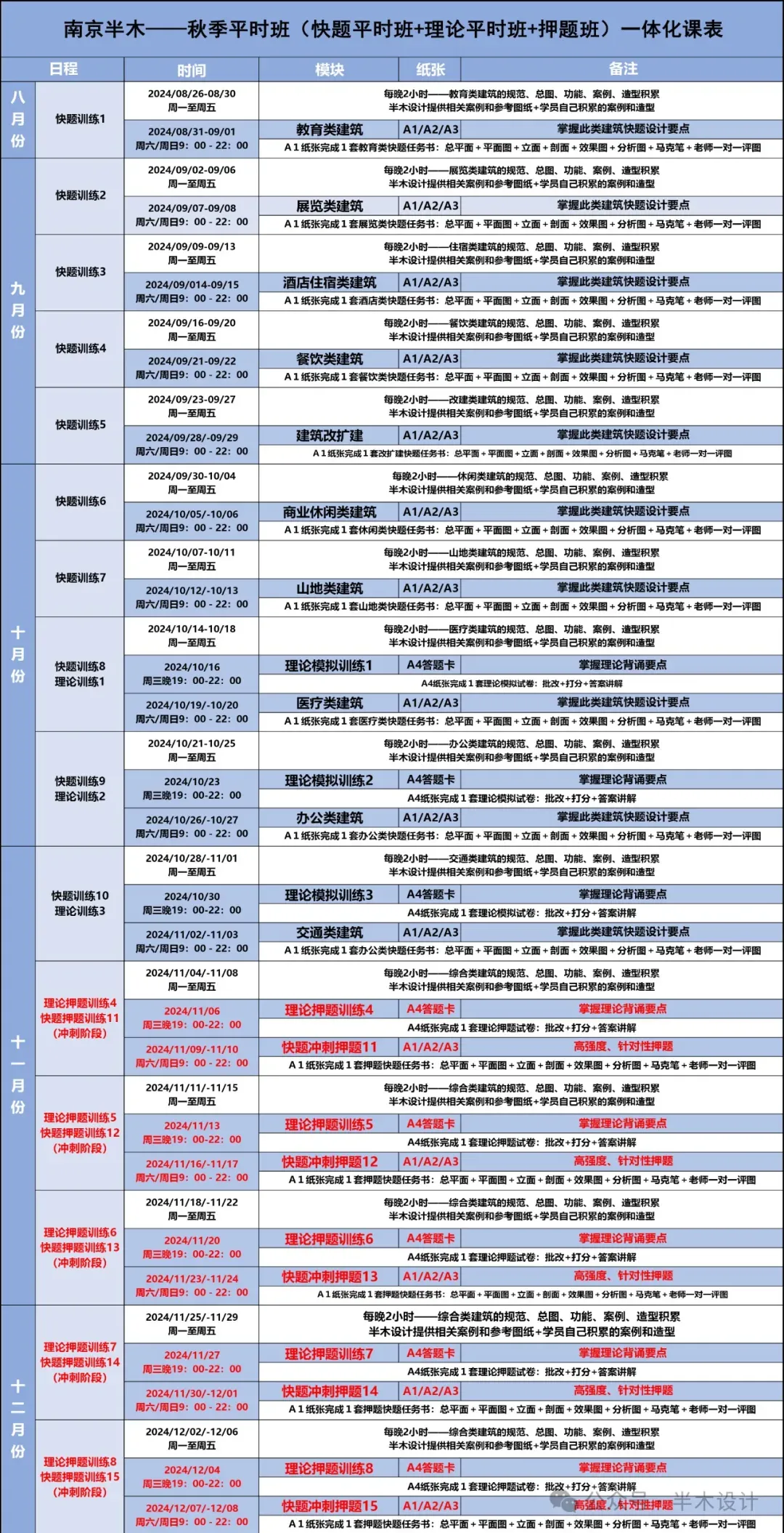(3)秋季快题+理论平时班(四合一冲刺班,包含押题班)备注:秋季快题冲刺+秋季理论冲刺+考前押题班,线上线下同步进行,自由选择