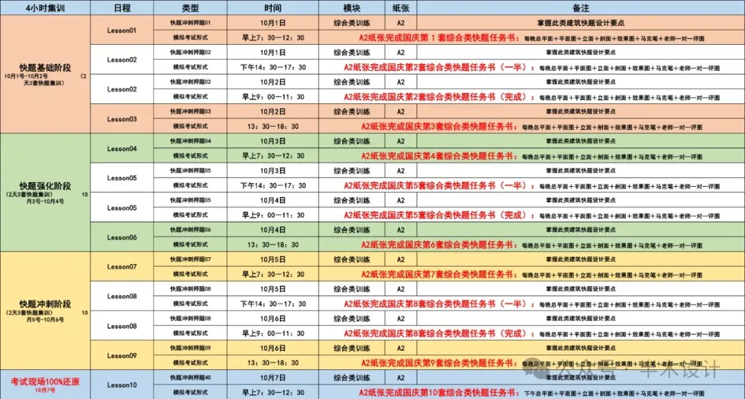 (2)暑期线下快题+理论班——必选课程(四合一强化班)备注暑期线下15天快题集训+6天建筑史+建筑构造理论集训+暑期后线上4个月看图辅导