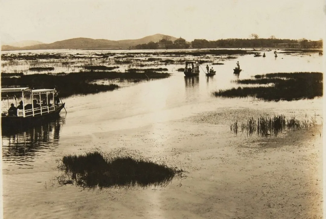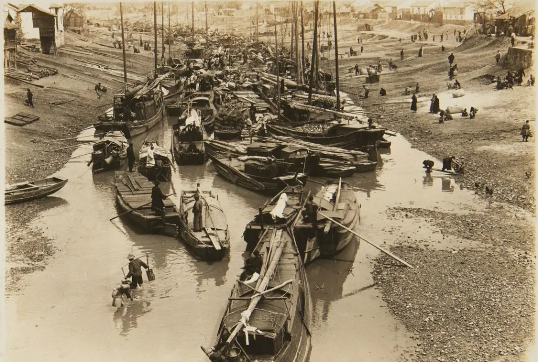 南京郊外情景:大家看,那些老百姓在河里捡拾什么东西?