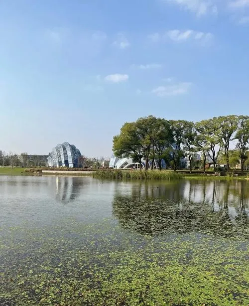 这个公园藏在紫东创意园里面,很多人开车路过都不知道这里能进来玩,它不是那种景区式的公园,没有大门,没有售票处,就是一片开放的生态绿地,湖面不算特别大,但够孩子在湖边喂鸭子玩半天,草坪是真草坪,不是那种踩上去硬邦邦的观赏草,铺个野餐垫能躺一下午,周围还有一圈步道,推婴儿车、骑滑板车都没问题,这种配置在南京其实不稀奇,稀奇的是你能在周末找到一块没人抢的草坪。