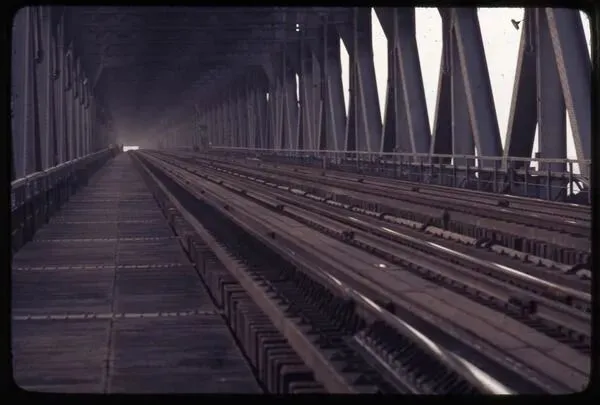 南京长江大桥是长江上第一座由中国自行设计和建造的双层式铁路、公路两用桥梁,被称为“争气桥”。下层铁路桥全长 6772 米,连接津浦与沪宁铁路干线,是当时南北交通的命脉,至今仍承担着繁忙的客货运任务。巨大的钢桁架梁纵横交错,构成富有力量感的几何韵律,是中国早期现代桥梁工程的典型代表。