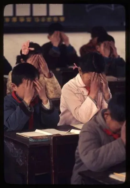 1977年3月24日,做眼保健操的南京小学生,真的是好熟悉的一幕。