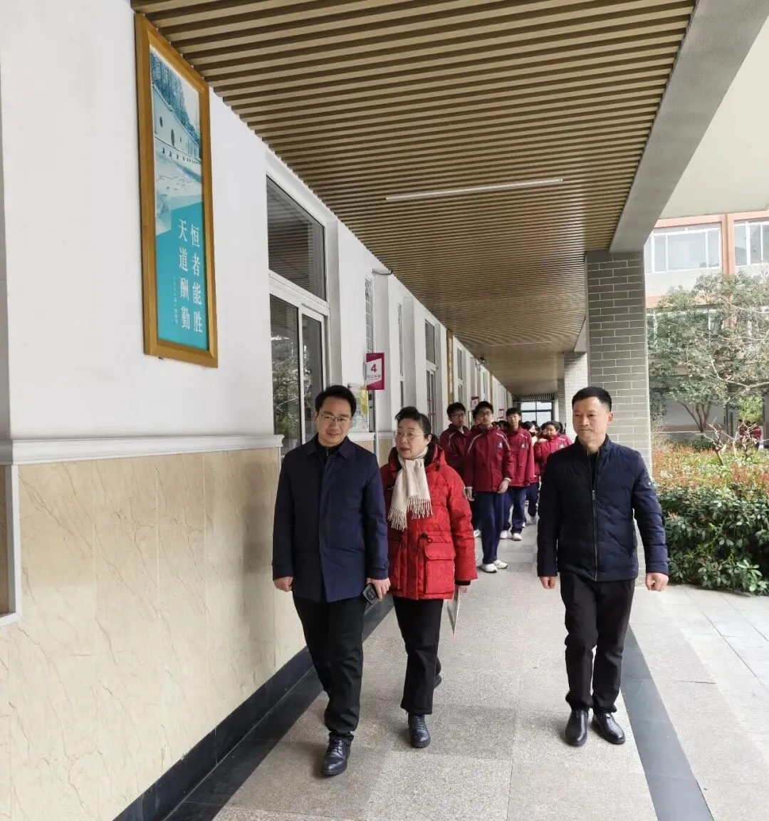 2026年3月6日14:30,雨花台区教育局领导莅临我校开展开学视导。组织科科长田兴颖在副校长黄侃、办公室主任高善传的陪同下,实地巡视校容校貌、校园文化布置,细致核查收费标准规范公示、校园安全设施维护等情况。期间,黄校长详细汇报了学校开学前后各项会议召开、“润心行动”推进、开学式举办等工作落实情况。此次视导全面检验我校开学筹备成效,为新学期各项工作平稳有序开展筑牢基础。