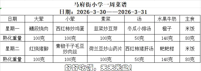 >南京市马府街小学2025-2026学年第二学期第5周菜谱