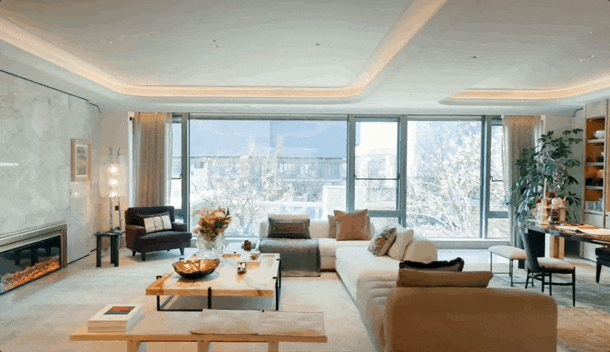 约250㎡"墅厅洋房"拥有6.6米挑高客厅和19㎡空中庭院,让大平层拥有"空中别墅"的纵向格局,这是质的飞跃。