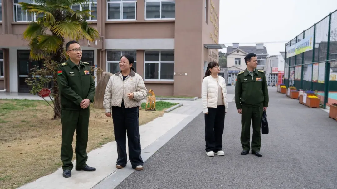 活动伊始,微凉的晨风轻拂校园,陆军指挥学院政治工作处领导一行抵达南京江北新区六一小学。在校门口,双方热情握手、亲切交谈,真挚的笑容与温暖的问候驱散了空气中的凉意,气氛融洽而庄重。随后,一行人参观校园并合影留念,镜头定格下军民携手、共话教育的美好瞬间,也为这场充满温情与意义的共建活动正式拉开序幕。