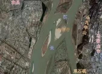 大家从图上就可以看出来,采石矶前方江面的中间有一块儿江心洲,呈长条状。