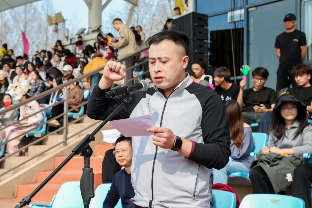 升旗仪式后,国家审计学院2023级审计学7班的张宏飞作为运动员代表进行宣誓。他郑重承诺,牢记比赛规则,遵守赛场秩序,尊重每一位对手,以良好的风格和出色的水平参与竞赛。体育教学部裁判员代表童晨庄严宣誓,将以严格且端正的态度执裁,恪守职业道德,全力维护竞赛的公平公正。