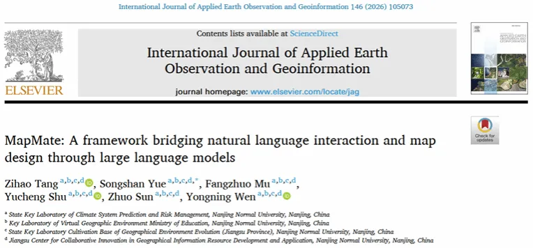 引用格式:Tang, Z., Yue, S., Mu, F., Shu, Y., Sun, Z., & Wen, Y. (2026). MapMate: A framework bridging natural language interaction and map design through large language models. International Journal of Applied Earth Observation and Geoinformation, 146, 105073. https://doi.org/10.1016/j.jag.2025.105073
