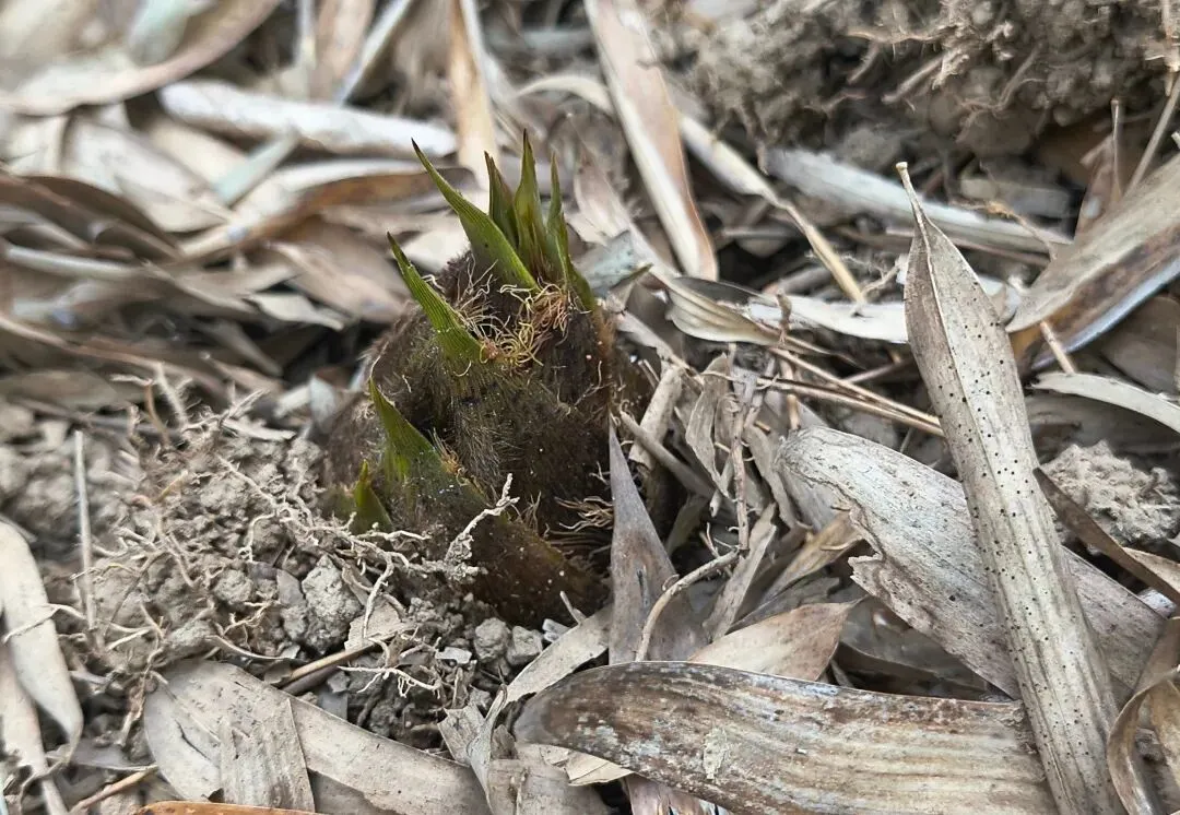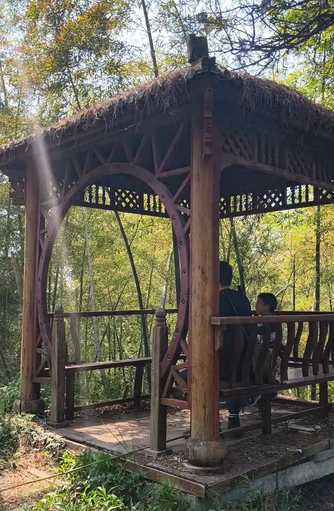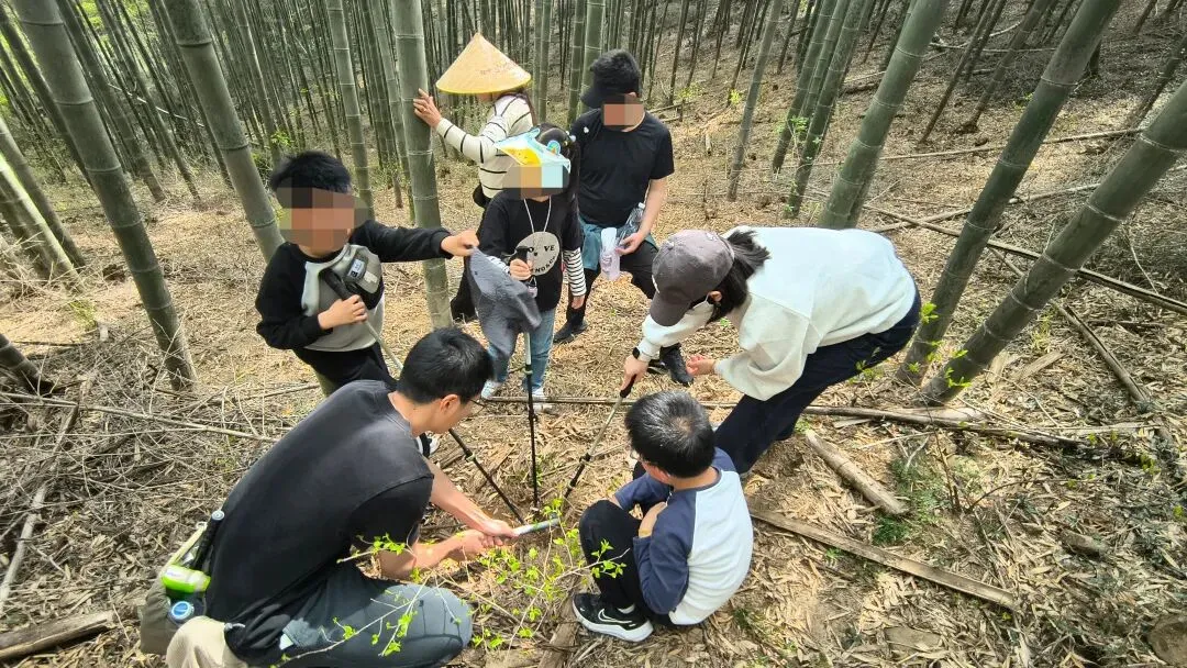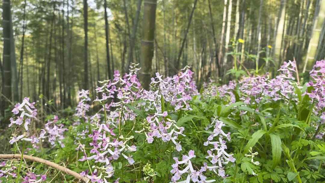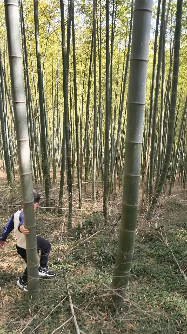 大约慢悠悠步行七八分钟,上了一个较大的坡道后,到了分岔口,这里有健康步道终点的标志,这个位置向左前或者向右后都可以走,是小环线顺时针和逆时针两个方向,我们这次选择的向右后方前进。沿着右后方这条路步行不多远,就可以看到路边有个亭子,古风古韵的,还挺好看的。这个亭子旁边有一条台阶路,应该是从下方还有一条台阶路能上来。亭子往前左边有一条上山的台阶路,两侧都是竹子,从地图上看应该是通往朱门状元阁(也叫宁郎阁)。虽然这个路线和我们参考的两步路路线不一致了,但是我们还是决定去状元阁一探究竟,于是我们在竹林间拾级而上。这就是宁郎阁啦,又称朱门状元阁,这并不是古迹,而是2014年修建而成的,如今却也是成了直山一景。亭内有一楼梯,扶手已晃动,看来建好后并没有很好维护。登上亭已俯瞰连绵起伏的丘陵山脉和一望无际的竹海,视野开阔,风景秀丽。这个亭子也就是直山的最高点了,整体来说还是非常轻松的,当然我们的徒步并没有结束。在亭子的东南方向有一条下山的小路,算是野道吧,浮土和枯竹叶较多,要小心点下山。野道上也有路标,但不多,好在行走的痕迹还算清晰,小朋友还自己总结了防滑技巧:横着走。走到一半的时候,我们忽然听到竹林里面传来人声,仔细一看,竟然是别人在挖竹笋。于是我们也临时决定进入竹林探险,看看能不能找到竹笋。可不就是找到了吗,小朋友们兴奋极了,虽然我们没带工具,但是还是凭借着毅力、登山杖和竹林里面捡的木棍一点一点挖了出来。收获,发现挖竹笋并不容易,非常考验眼力,几个小朋友都用他们的细心发现了冒尖尖的竹笋了,真的很开心啊!在这片竹林里面欢快挖笋大约1小时后,我们终于从这片竹林出来,出来后是一个三岔口,向左继续小环线,向右返程回到出发点,我们选择向左继续小环线。这条路起初还是宽敞的大路,没走多远路面就渐渐变窄,路边也开始杂草丛生。想来大概是来游玩的人大多在竹林里挖完笋就直接返程了,很少有人继续往前走,这条路才显得有些冷清?这样的小路大概走了10分钟,遇到一个三岔路口,左转继续,这里可以看到一个00038小班4号标准地,不知道是哪个幼儿园在这里承包了一片竹林?继续向前走两三分钟分钟会再遇到一个十字路口,选择向左转。这边也是大路,路两边都是毛竹,以及这种粉紫色的小花。走了三四分钟,遇到Y字路口,右边是全程七八公里的大环线,今天时间有限,我们选择从左边走。从这里开始一直沿着大路走,大约10分钟,会看到几间红砖房子。左转后马上会遇到一个门口有小池塘的养殖场,走左边继续向前。过了养殖场,走到大路转弯的地方,这里要注意,不能继续沿大路走了,要从右边走。走到这里手机就没电了,后面没能再拍照记录,好在也快回到起点,我用文字把剩余路线说清楚,照着走就没问题。
