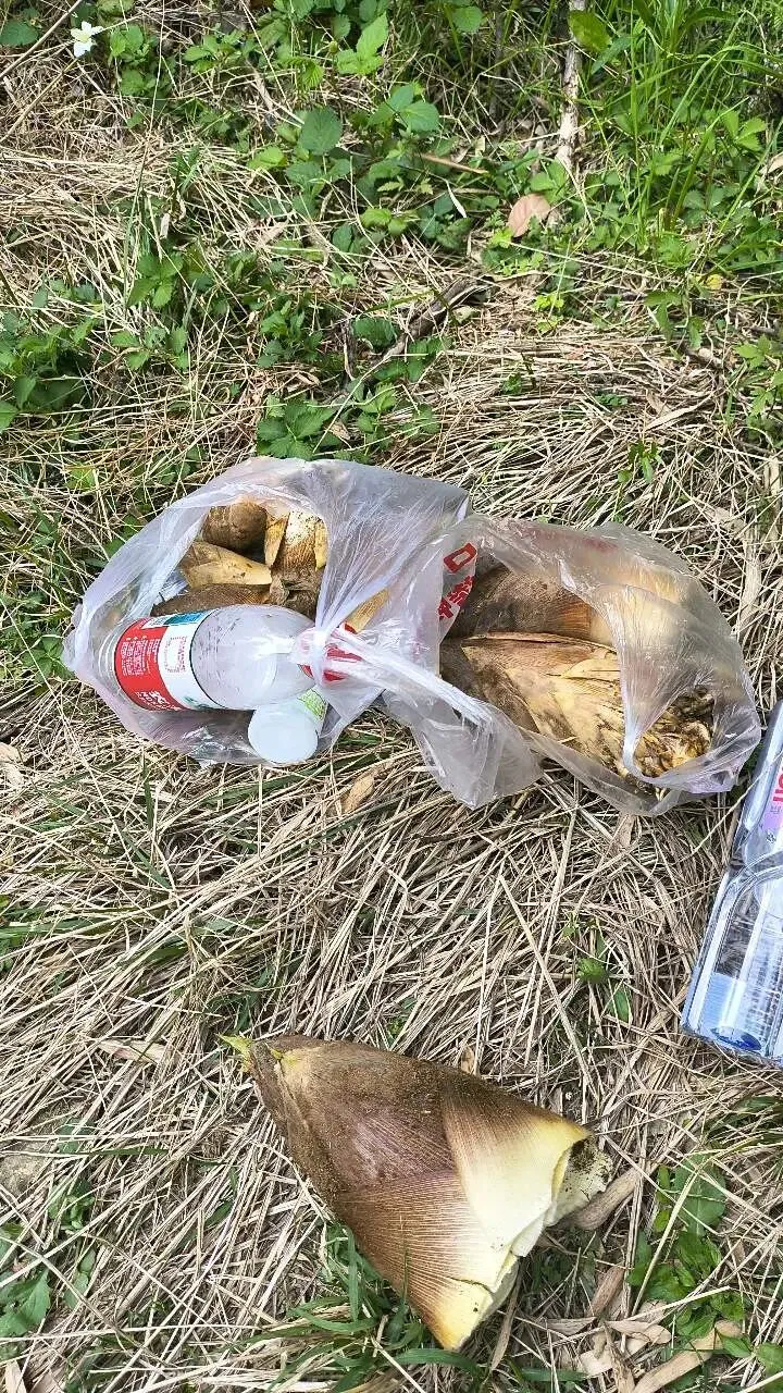 在刚才的路口右转→先经过三处坟茔→接着缓坡向上穿过一片竹林→再穿过一小片茶园→穿出茶园后在小路上右转继续前行,没多久就能看到水泥大路;上大路后左转走约300米,就回到出发时经过的健康步道终点,也就是1️⃣号岔口位置。全程大约走了4公里,耗时近3小时,其中还包含在竹林里挖笋的1小时。一路边走边玩,节奏悠闲,完全不累。