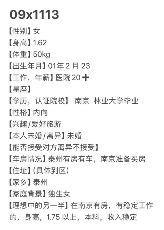 南京月老丨2001年,女,身高162,南京林业大学毕业,医院工作,年薪20万+
