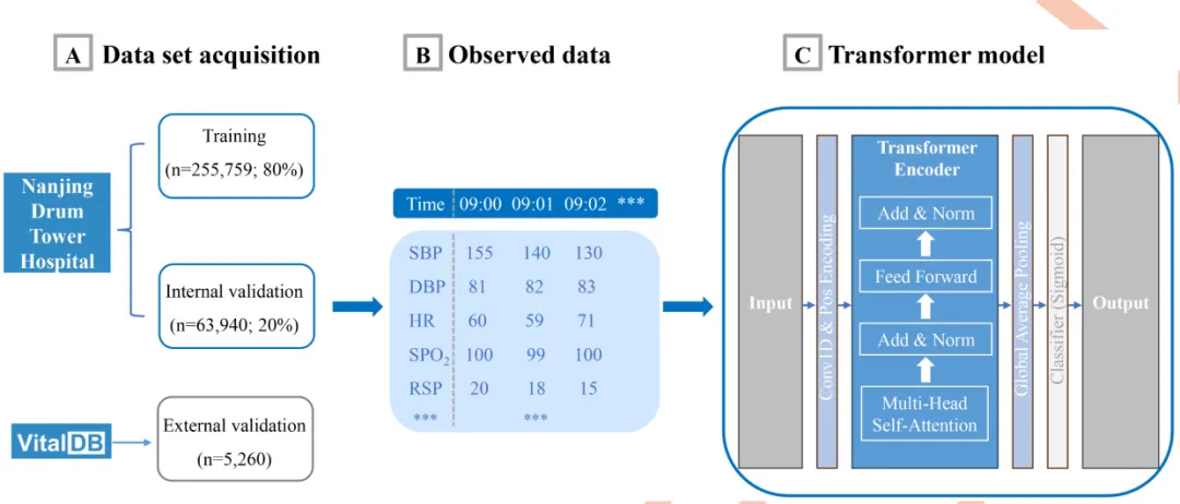 2️⃣架构优势:利用Transformer的自注意力机制,有效捕捉生命体征中预示血压下降的长程时序模式。
