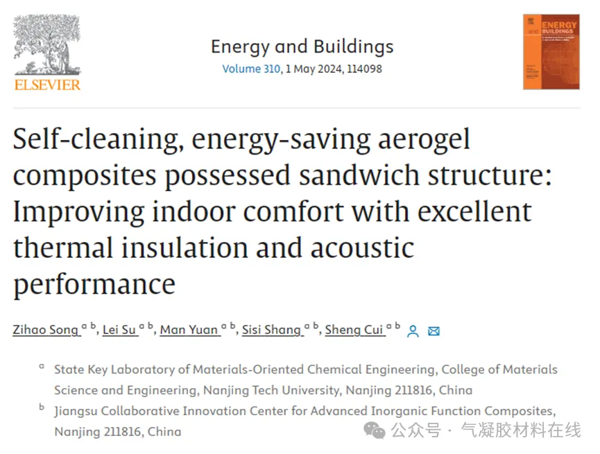 南京工业大学||具有三明治结构的气凝胶材料助力建筑保温节能与国家双碳战略实施