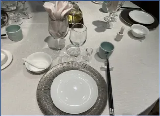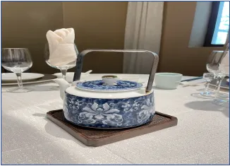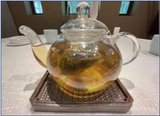 餐厅茶具由陶瓷改为玻璃茶壶,可视内部,整体清爽干净。