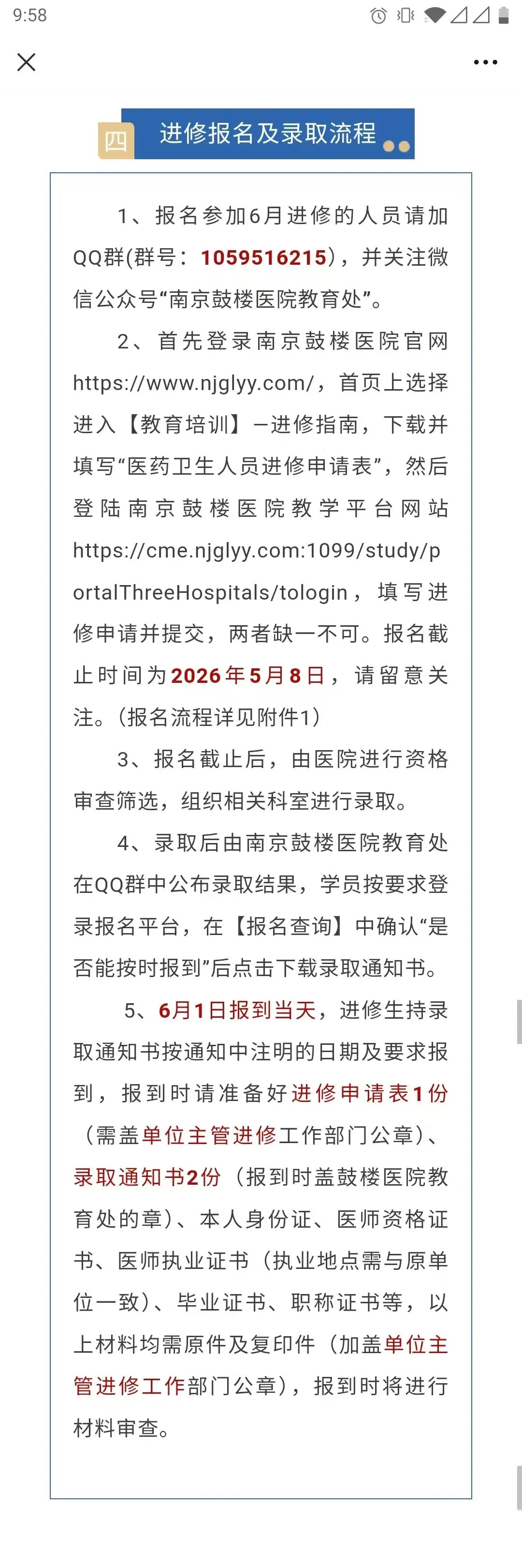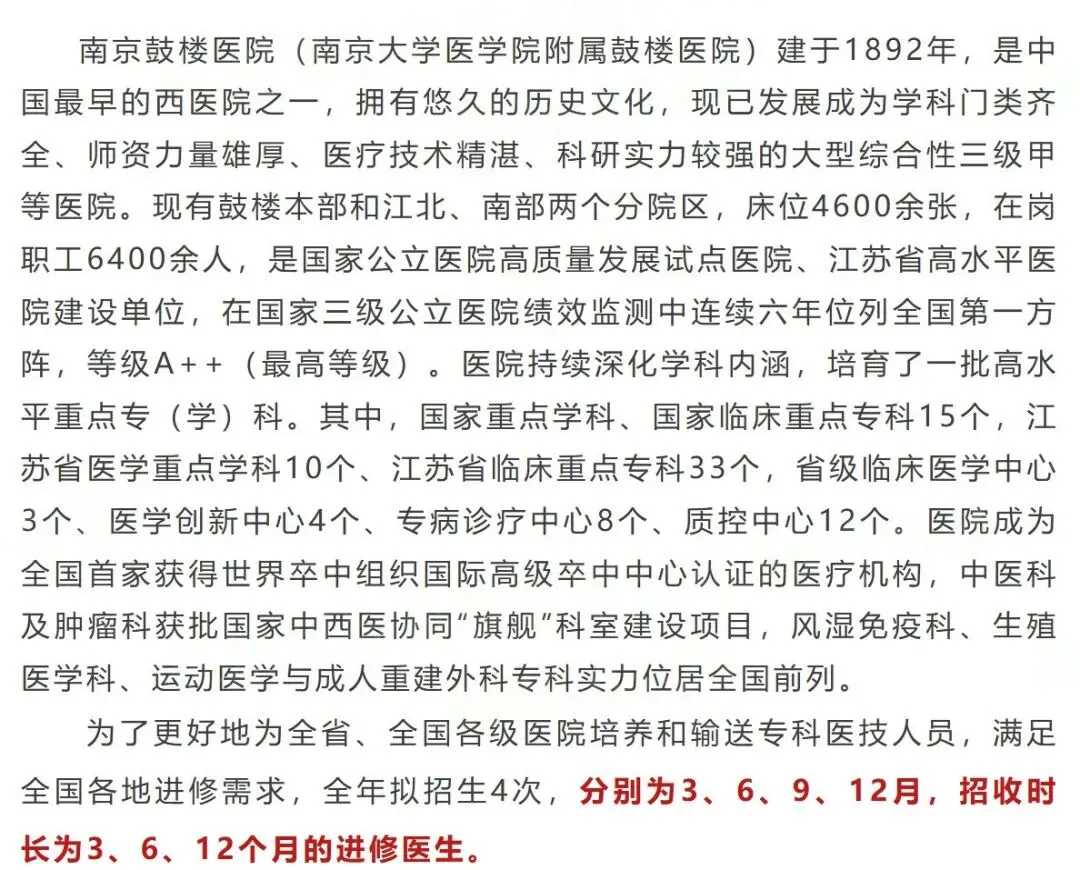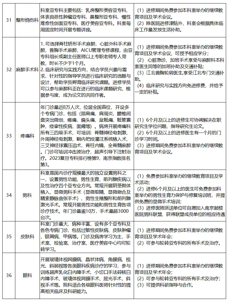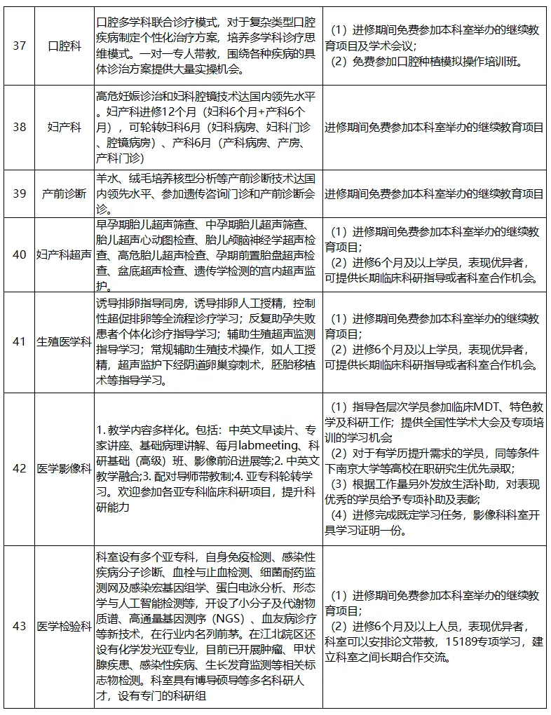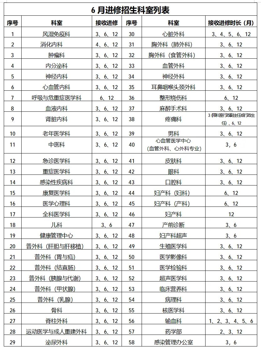 注1:妇产科(不含产前诊断、妇产科超声)、消化内科、疼痛科、呼吸与危重症医学科、烧伤整形科不接收3个月的进修。
