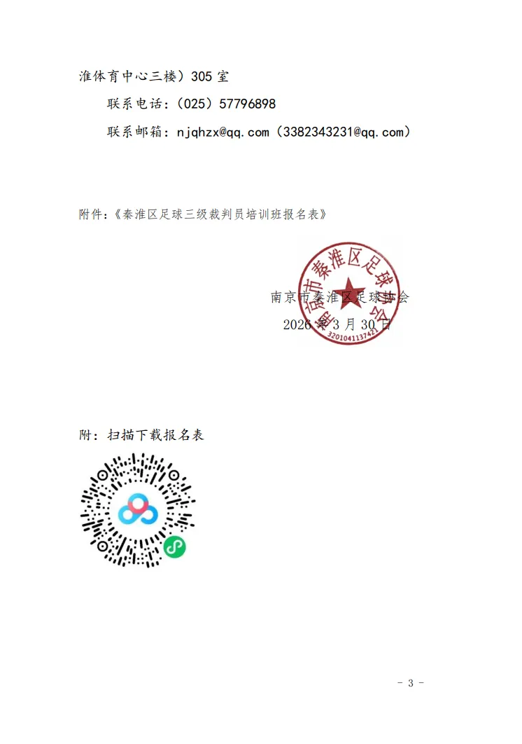 关于举办2026年南京足协五人制足球三级裁判员培训班秦淮站的通知