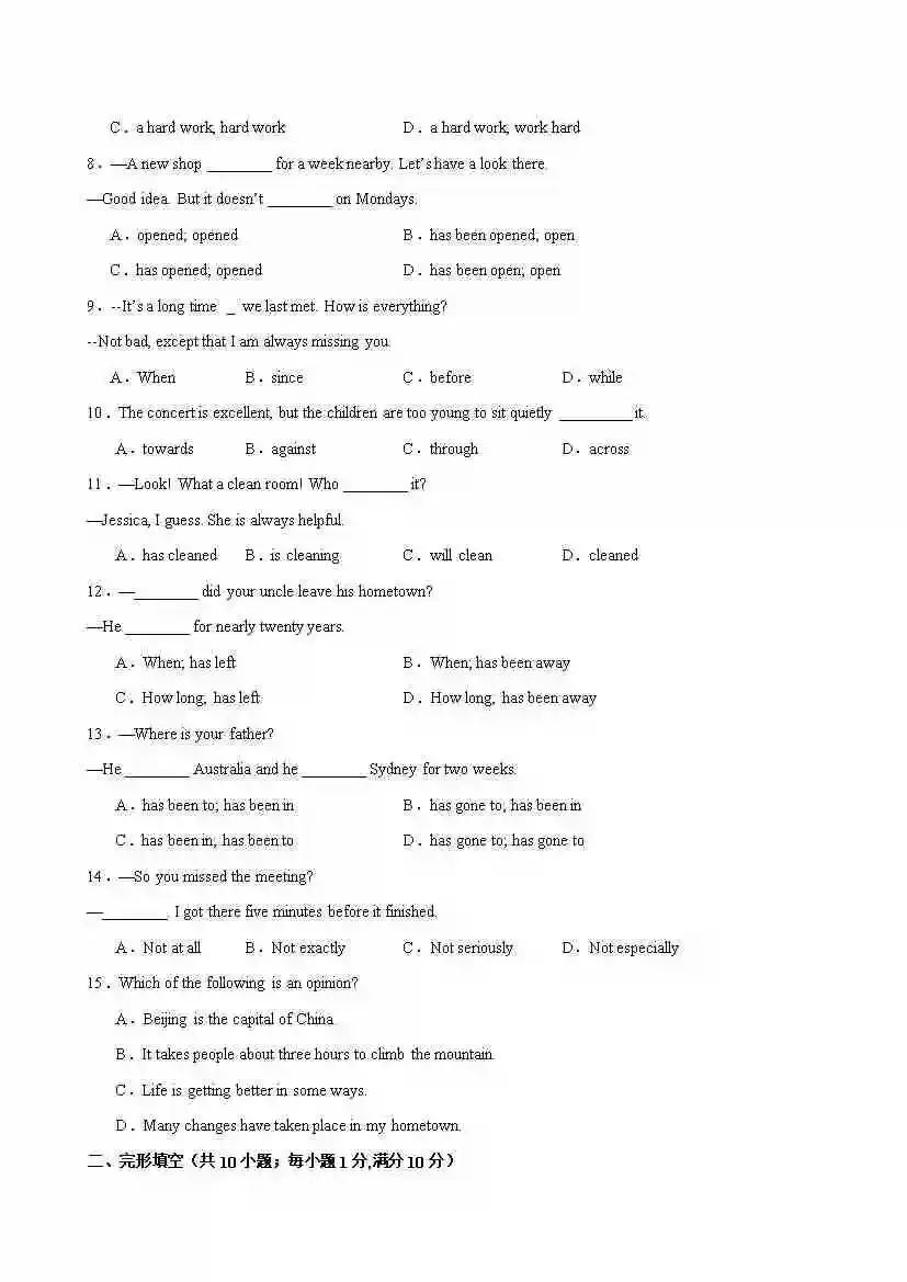 【译林】八年级英语下学期第一次月考(无锡卷)(原卷版)