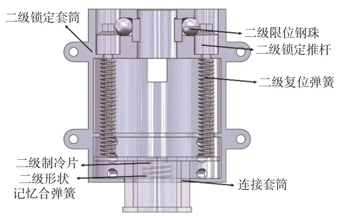 针对传统驱动元件体积大、质量重以及机电连接方案不足的问题,引入形状记忆合金(SMA)弹簧作为核心驱动元件,并创新性地设计了“楔形锁”两级拉紧锁定结构。该机构不仅实现了大容差范围下的抗阻力连接,还通过机械-电气一体化设计,为航天器在轨升级、更换与加注提供了有效的硬件支持。