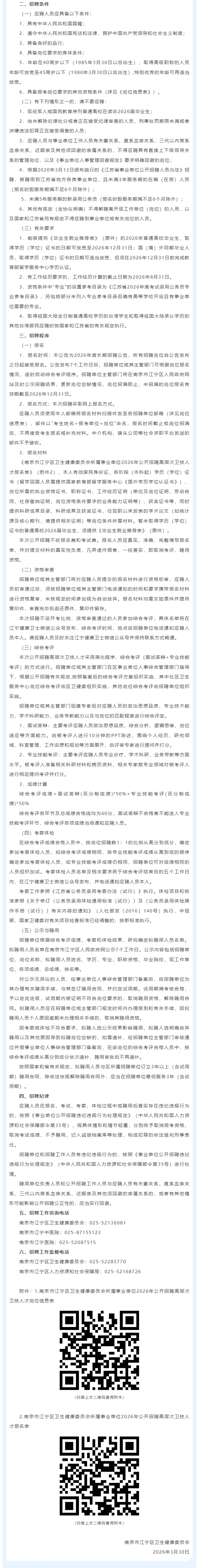 >【医疗编制】南京市江宁区卫生健康委员会所属事业单位2026年公开招聘高层次卫技人才公告