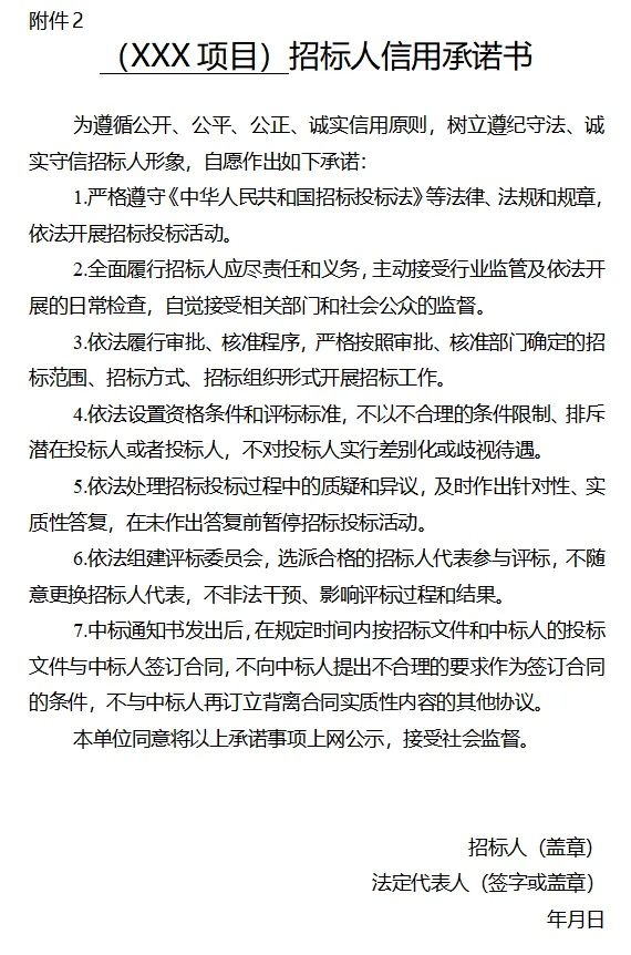 1.全面落实招标投标事项集体研究、合法性审查和内部会签相结合的议事决策机制,完善层级监督和专门监督,积极发挥内部审计与纪检的监督作用。2.严格按照项目审批、核准部门确定的或受理登记的招标范围、招标方式、招标组织形式依法开展招标工作,未经批准或变更登记不得擅自调整。3.规范引用国家规定的标准资格预审文件和招标文件,根据项目的具体特点与实际需要认真组织编制招标文件,不得通过设置不合理条件排斥、差别对待或限制潜在投标人。4.建立招标人责任追究终身制,选派责任心强、业务精湛、公道正派的工作人员担任招标负责人、参与评标活动、办理异议答复等。5.认真审查书面评标报告,重点审查是否存在倾向性评分现象、是否存在客观性指标评分不一致、是否存在主观性指标评分畸高或畸低现象、是否对异常低价投标或严重不平衡报价进行详细评审、是否存在随意否决投标等情况。6.严格按照国家有关技术标准规范和合同约定组织验收,有序引导招标投标活动由程序控制单一型向程序控制和绩效结果并重型的转变,推进形成项目建设全过程闭环式管理。1.依法必须进行招标的工程建设项目,均应当提前发布招标计划。涉及国家安全、国家秘密和抢险救灾等不宜采取公开招标方式的项目除外。2.招标计划应当包括:项目名称、招标人名称、立项文件及文号(或项目立项的进展情况)、招标内容(招标范围、招标方式、招标组织形式)、合同预估价、资金来源、招标公告计划发布时间等内容。(详见附件1)3.招标计划采取招标人自行发布和行业主管部门代为发布两种方式。发布单位登录“江苏省公共资源服务平台(南京市)”,按要求填写相关信息,提交加盖招标人公章的招标计划表,统一通过平台发布。4.招标计划发布时间为招标公告(投标邀请书)发布之日前至少30日,提高招标投标活动透明度。招标计划发生变化的应当及时更新。1.信用承诺主体为依法必须进行招标的工程建设项目的招标人(业主单位),包含各级政府部门、事业单位、国有企业、代建单位和总承包单位等。3.在发布项目招标公告时,招标人应签署《招标人信用承诺书》,将盖章的承诺书与招标公告同步在南京市公共资源交易平台发布,接受社会监督。4.招标人违反承诺内容的,有关招标投标行政监督部门应当如实记录其违诺信息,并依法依规推送至相关信用信息平台。1.招标人发售资格预审文件、招标文件收取的费用应当限于补偿印刷、邮寄的成本支出,不得以营利为目的。2.纸质招标项目,招标文件费应控制在100元内,确附有大幅图纸、彩印等特殊要求的则应控制在200元内。鼓励招标人(招标代理机构)向潜在投标人免费提供纸质招标文件。3.电子招标项目,一律不得收取招标文件费。招标人应当在招标公告或资格预审公告中以醒目方式列明电子招标文件下载地址,方便潜在投标人免费下载。4.招标人(招标代理机构)不得另行巧立名目,收取与招标文件有关的任何费用。1.各招标人要贯彻落实国家和省、市关于优化招标投标领域营商环境的各项要求,建立健全内控管理机制,切实做好招标计划提前发布、实行招标人信用承诺、规范招标文件收费等工作。2.市公共资源交易中心要及时调整和完善电子招标投标交易各相关平台功能,为在线发布招标计划、提交信用承诺书、免费下载招标文件提供技术支撑和服务保障。3.各招标投标行政监督部门要加强指导督促,进一步强化事中事后监管,推动夯实招标人主体责任,持续优化我市招标投标领域营商环境。