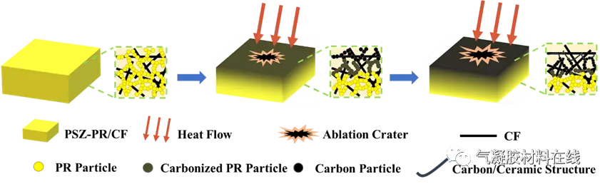 图7. PSZ-PR/CF复合材料的烧蚀机理示意图