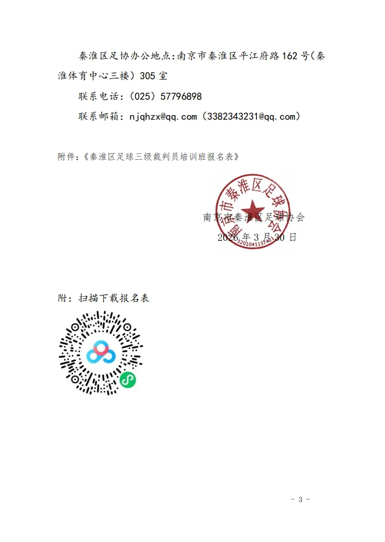 关于举办2026年南京足协足球三级裁判员培训班秦淮站的通知