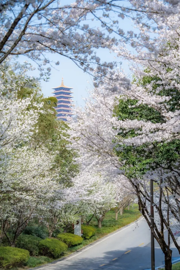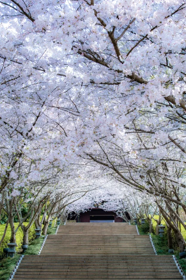 将樱花的浪漫与佛国的禅意交融的,