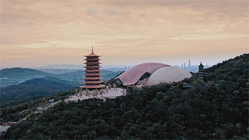 ▲牛首·希广见场由“文镜”和“香筑”两栋建筑构成叠石般的造型顺应着自然的律动,绵延成流动的画卷02.